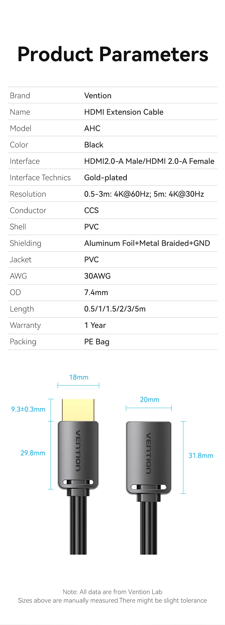 Comprar Vention Cable de extensión HDMI 2,0 4K/60Hz HDMI 2,0 2,1 Cable macho a hembra para HDTV Nintendo Switch PS4/3 adaptador extensor HDMI 8K