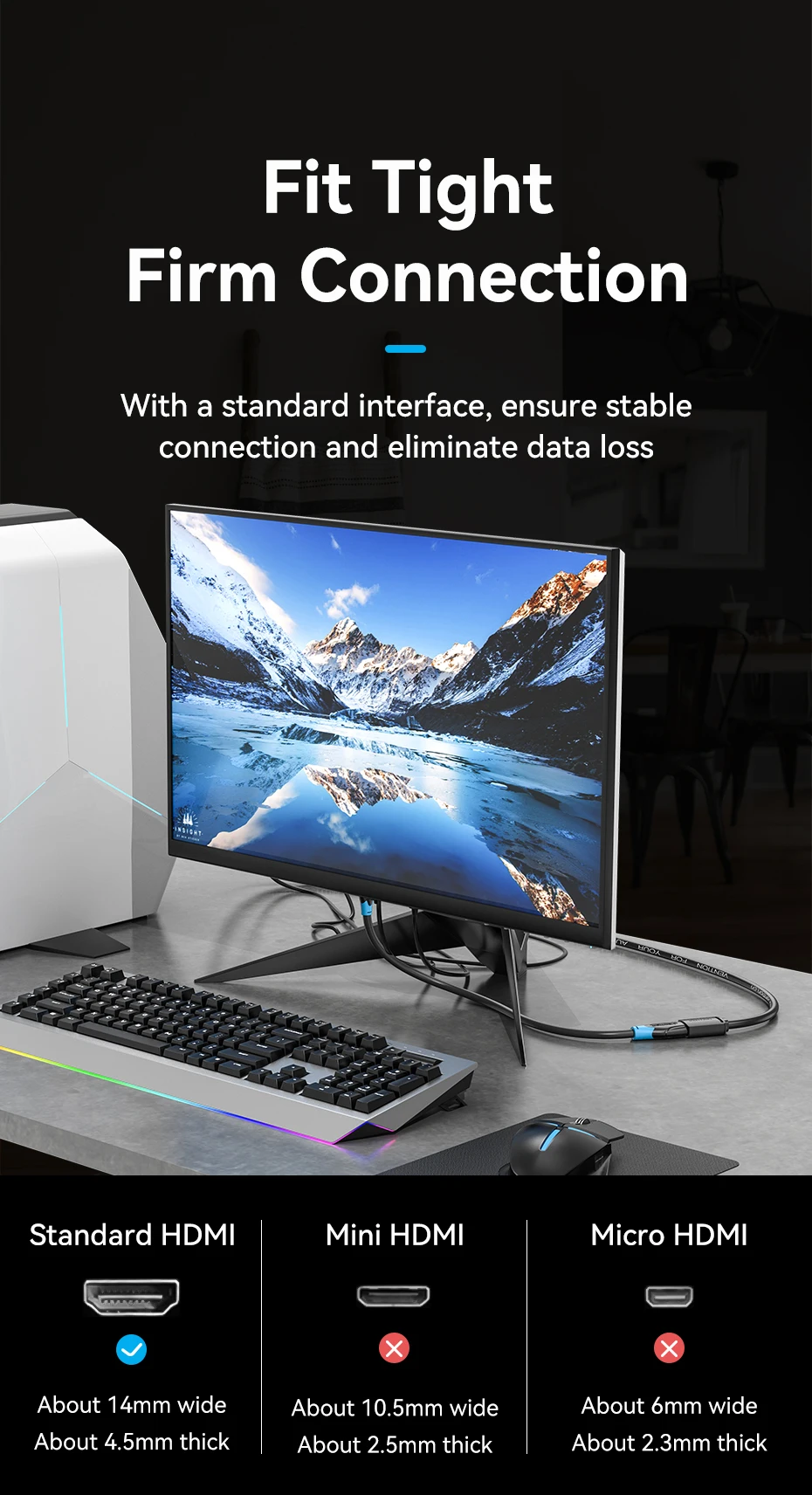 La tecnología HDMI 2.0 mejorada admite una resolución ultra HD de 4K a 60 Hz, proporciona una gama de colores más amplia y rica, ya no se atasca ni se cae los fotogramas.