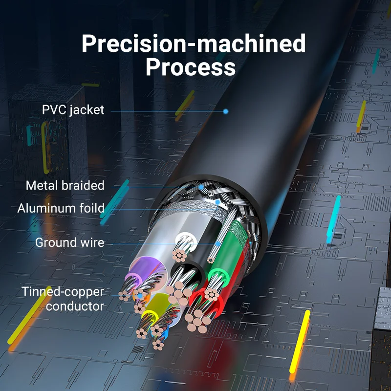 El proceso mecanizado con precisión se centra en cada detalle para lograr un alto rendimiento. La interfaz niquelada hace que el enchufe sea resistente al desgaste, a la oxidación y duradero en el intercambio. El material de PVC Premium hace que el alambrón sea más flexible y de alta tenacidad, con una vida útil más larga. El diseño de cola larga se niega a cambiar los cables con frecuencia para aumentar la durabilidad.