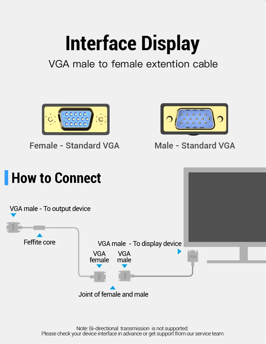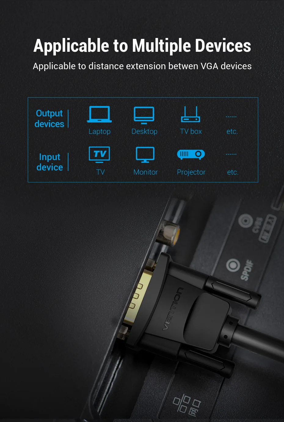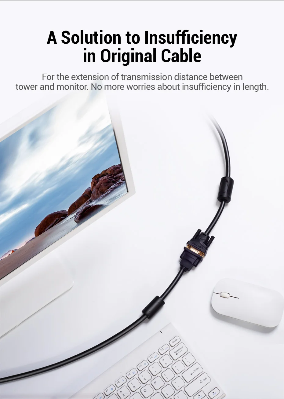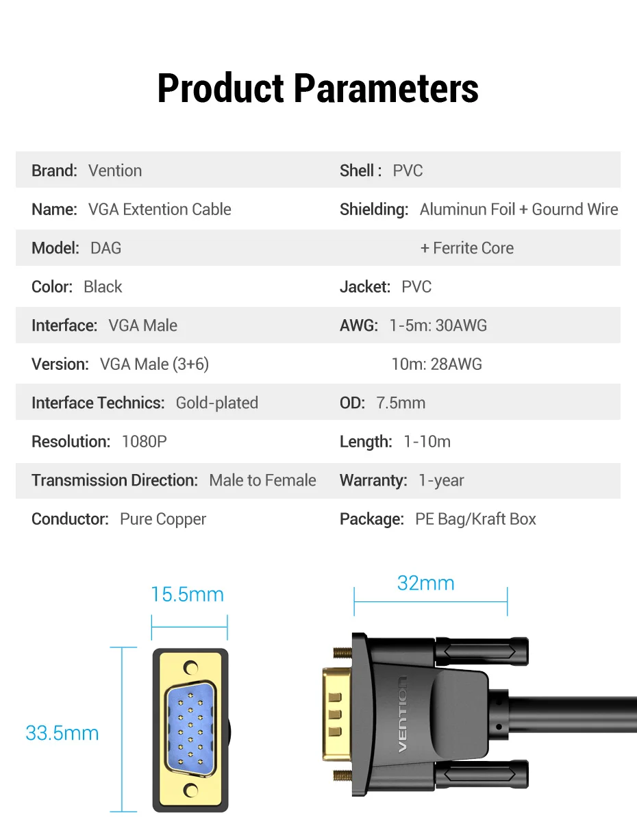 Vention-Cable de extensión VGA de alta calidad, extensor macho a hembra de 1m, 1,5 m, 2m, 3m, para Monitor de proyector de ordenador, 5m