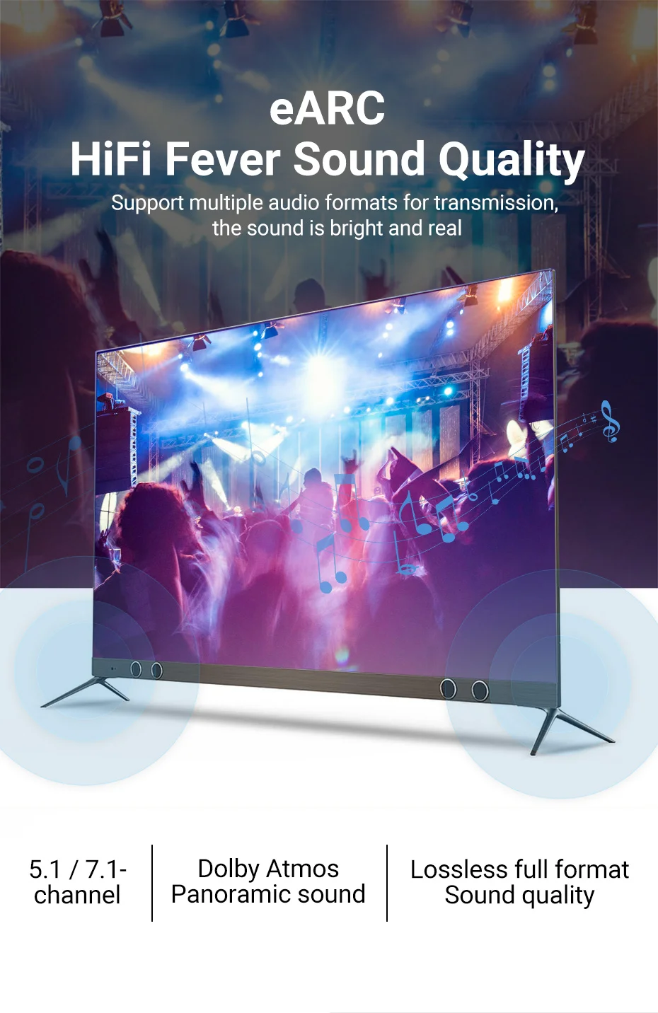 Soporte de longitud completa 4K @ 120Hz,8K @ 60Hz Resolución HD compatible con el modo de juego VRR para reducir el retraso/crack