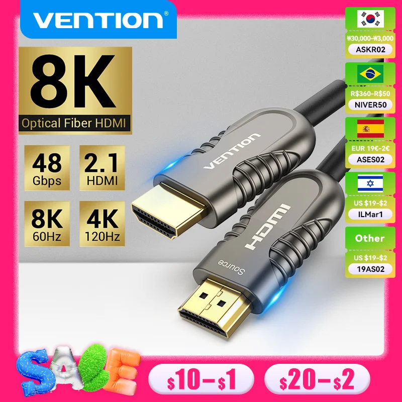 Comprar Vention-Cable de fibra óptica 8K HDMI 2,1, 120Hz, 48Gbps, Ultra alta velocidad, HDR, eARC, para HD, Samsung, LG, TV Box, PS5