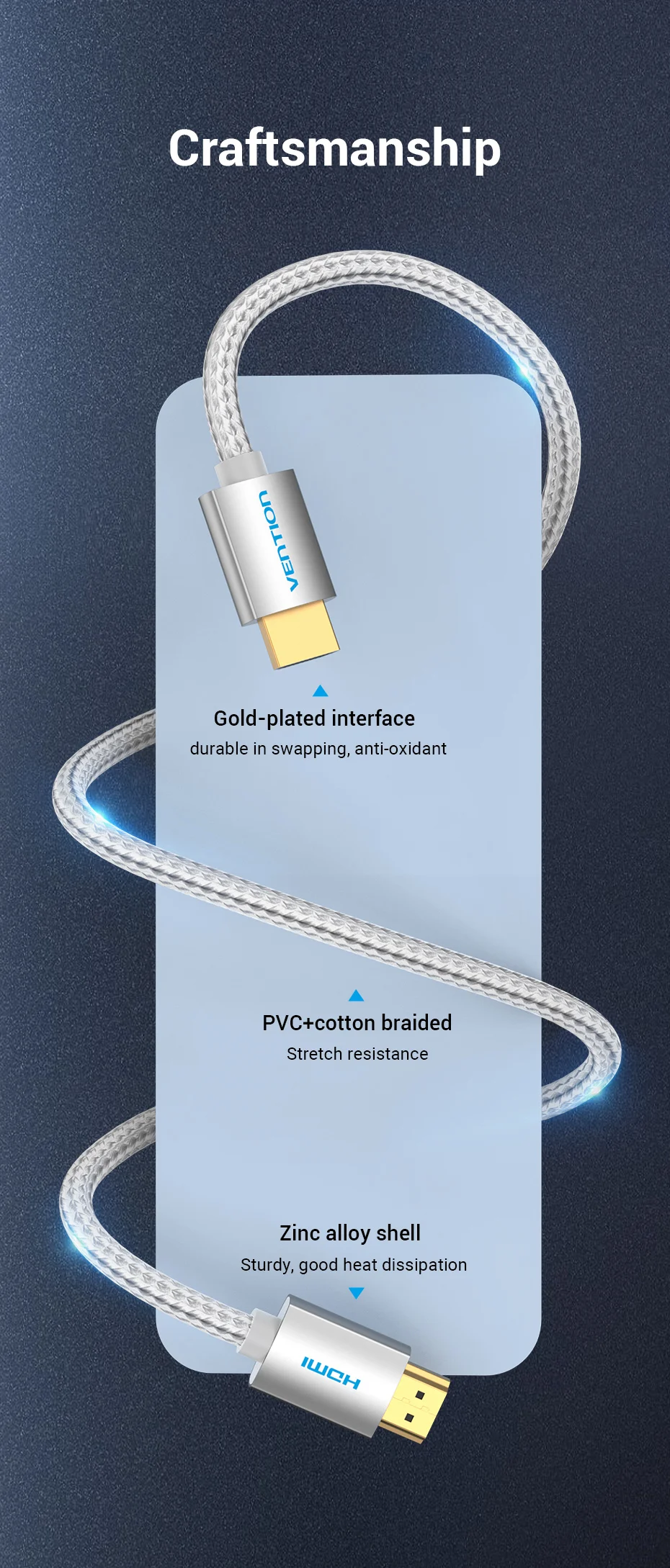 Con la licencia técnica de HDMI Association, cumple con el estándar internacional de producción de cables HDMI.