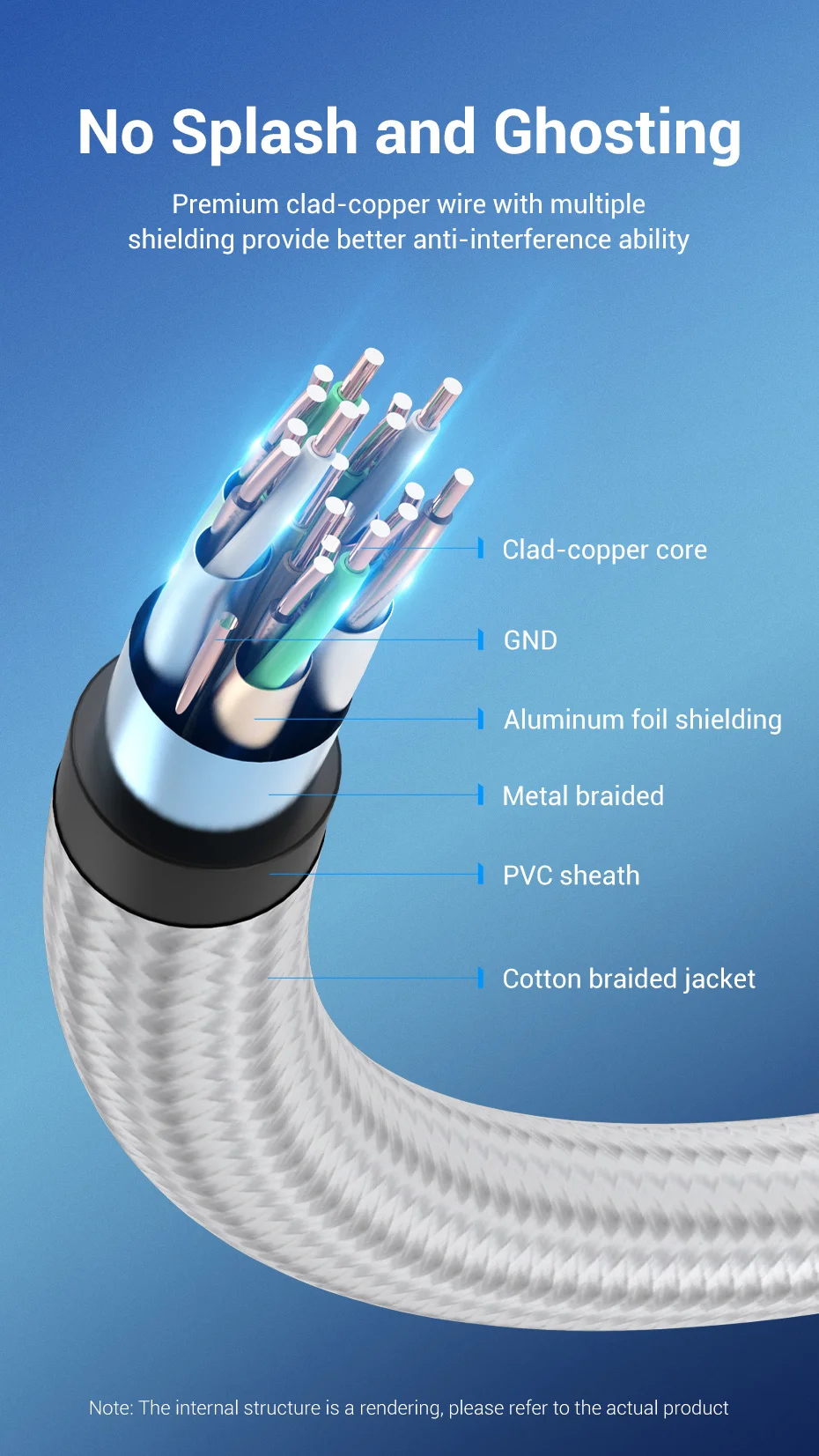 El alambre de cobre revestido de primera calidad con blindaje múltiple proporciona una mejor capacidad antiinterferente.
