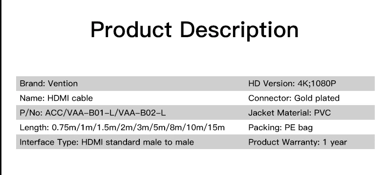 Comprar Vention-Cable HDMI 2,0 3D 2160P, 1m, 2m, 3m, 10m, 15m con adaptador Ethernet HDMI para proyector HDTV LCD, Cable HDMI 4K, en oferta