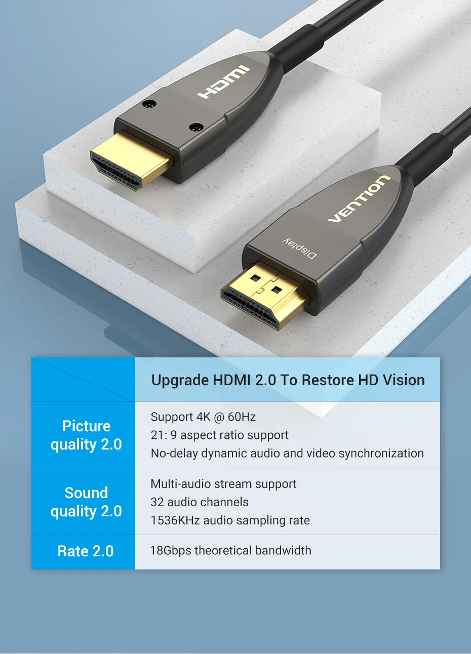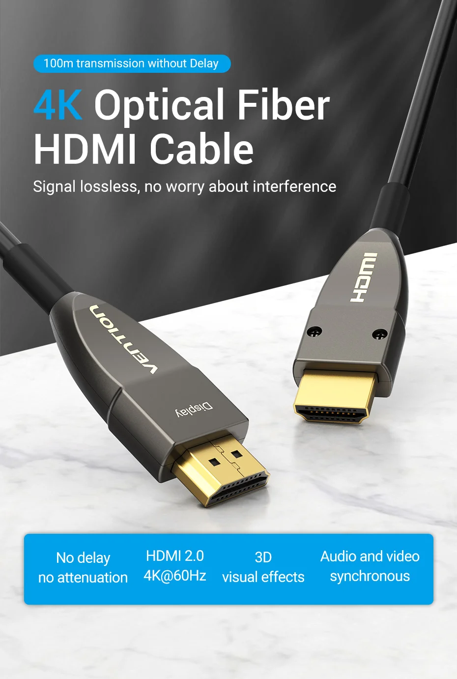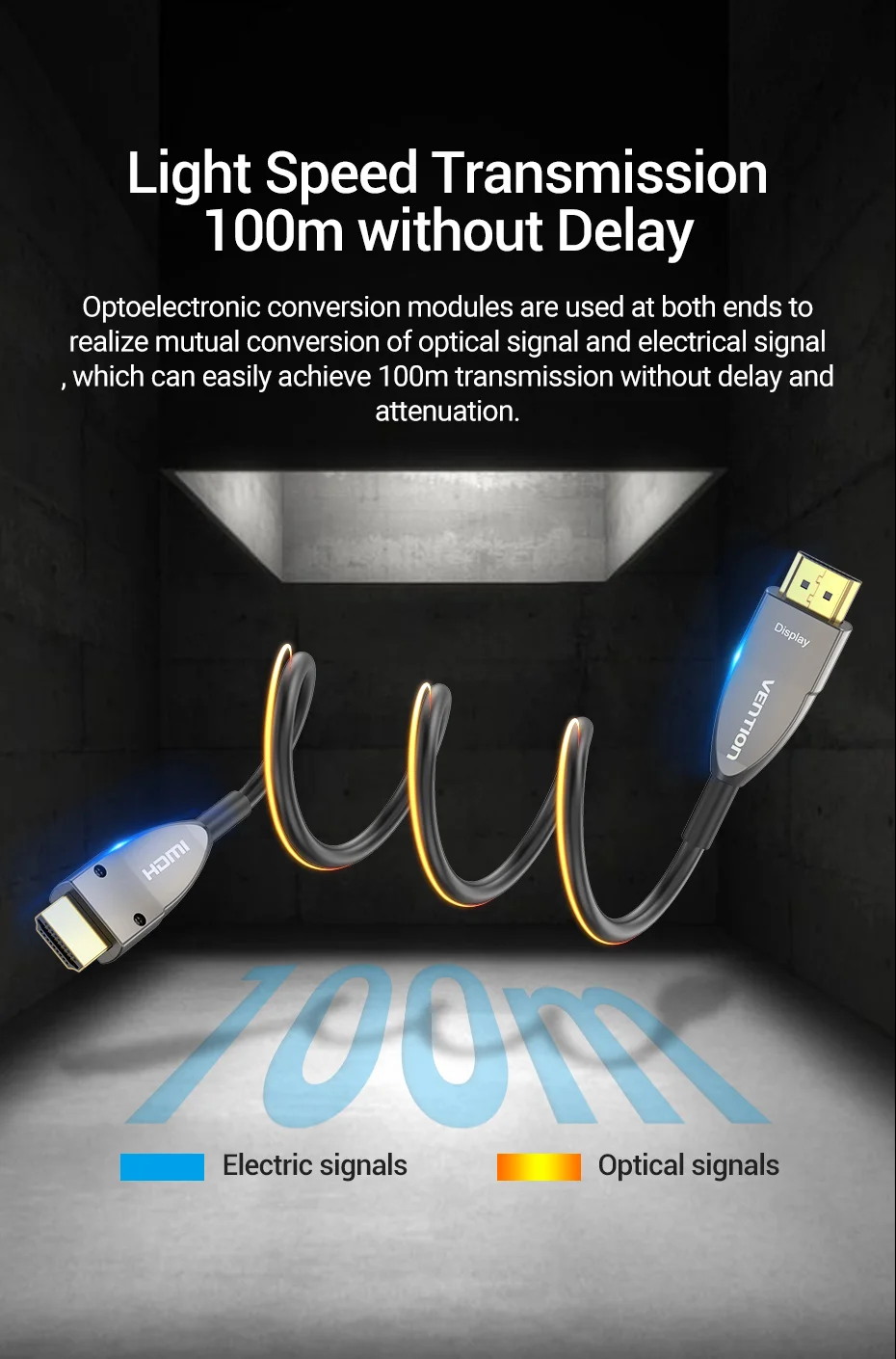 Comprar Vention-Cable HDMI 2,0 de fibra óptica, accesorio 4K, 60Hz, 2,0 HDR, para proyector HDTV, PS4, 10m, 20m, 30m, 50m, 60m, 80m, 100m