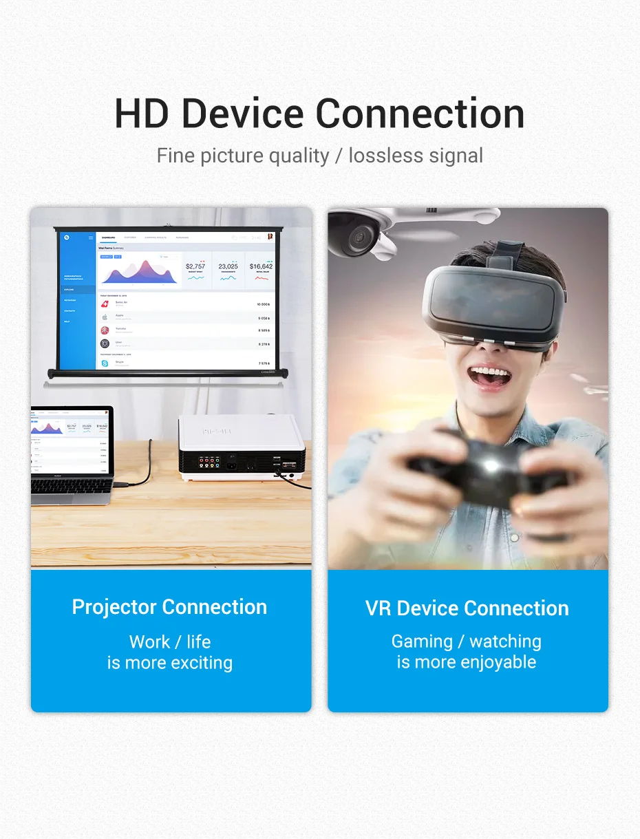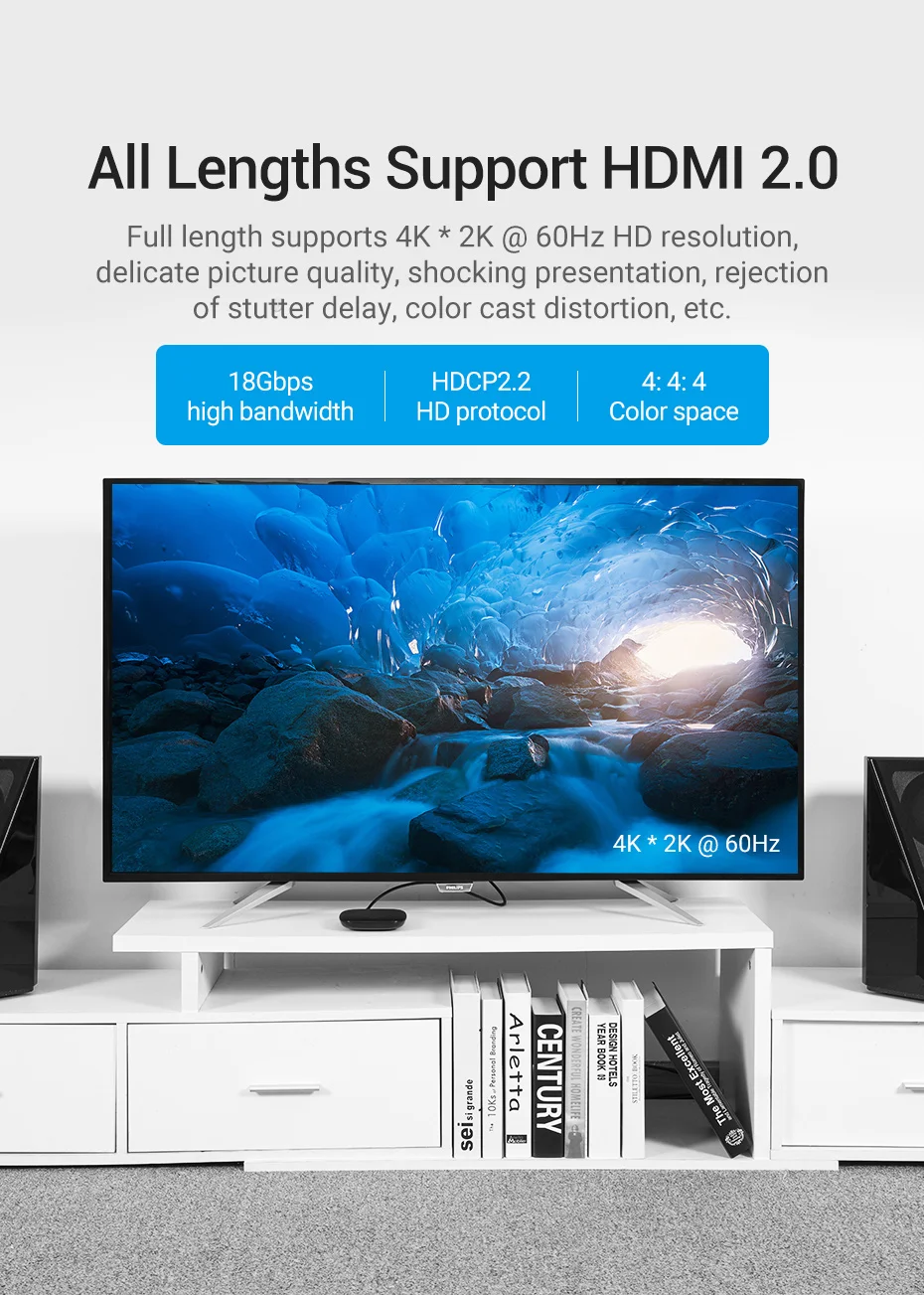 Full length supports 4K * 2K @ 60Hz HD resolution, delicate picture quality, shocking presentation, rejection of stutter delay, color cast distortion, etc.