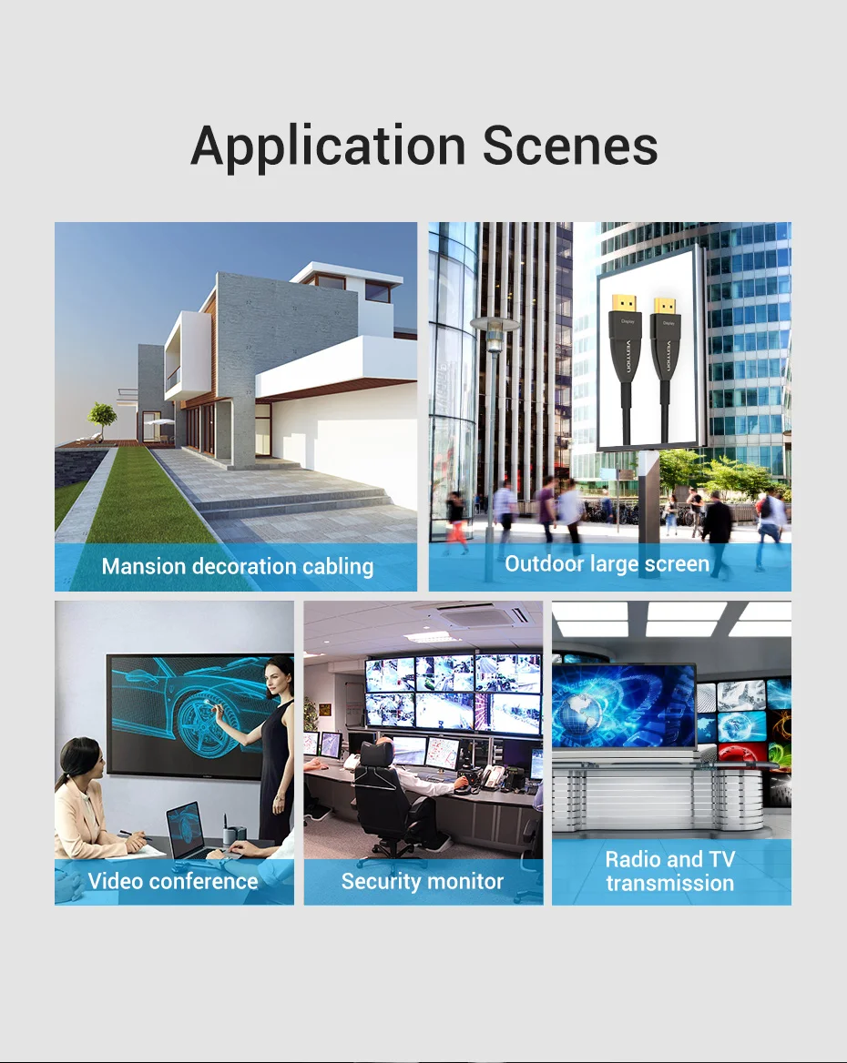 Adopt 4-core optical fiber to transmit TMDS signal, support 100m transmission, no need to worry about signal interference when decoration is embedded