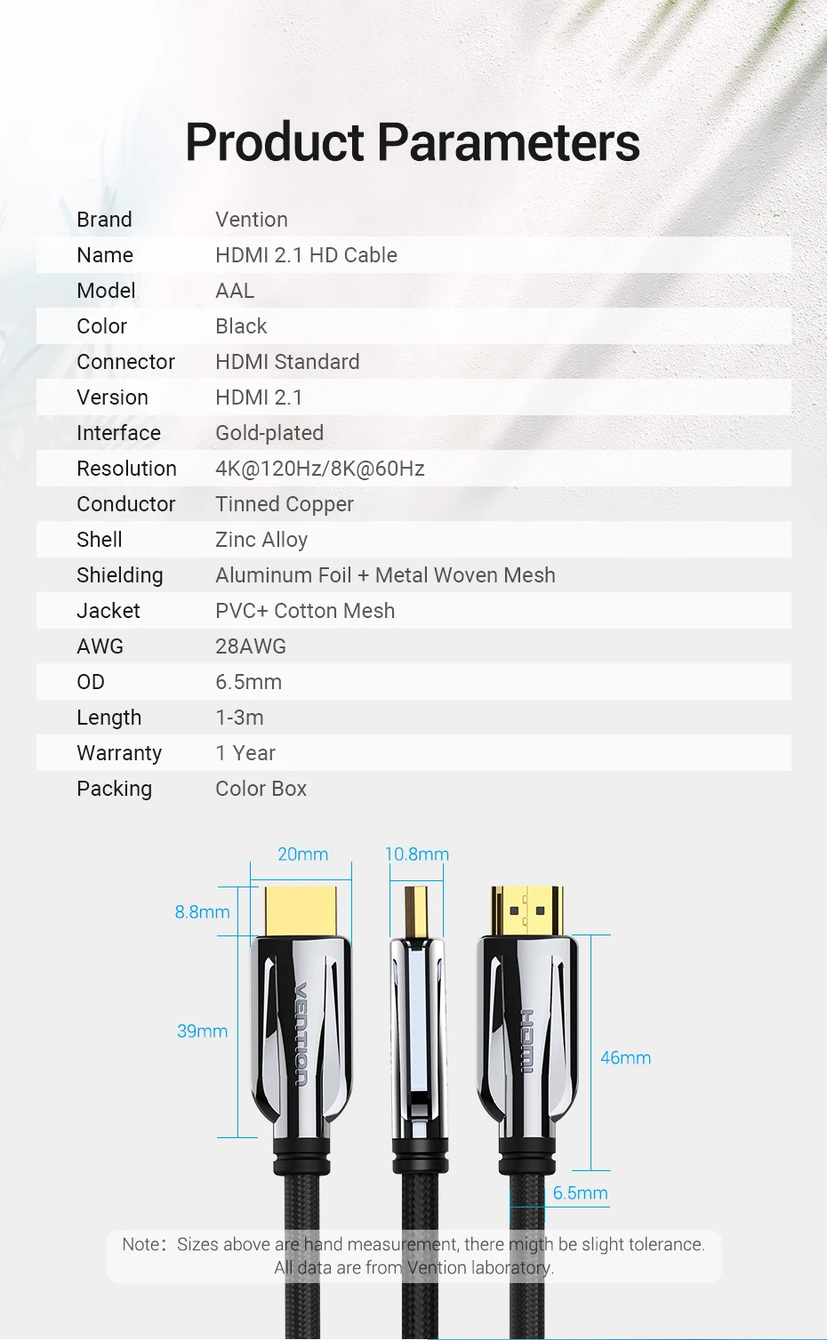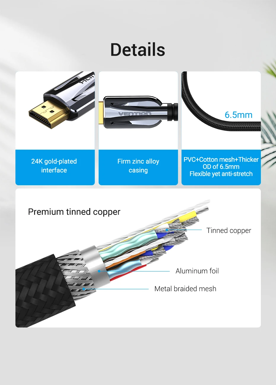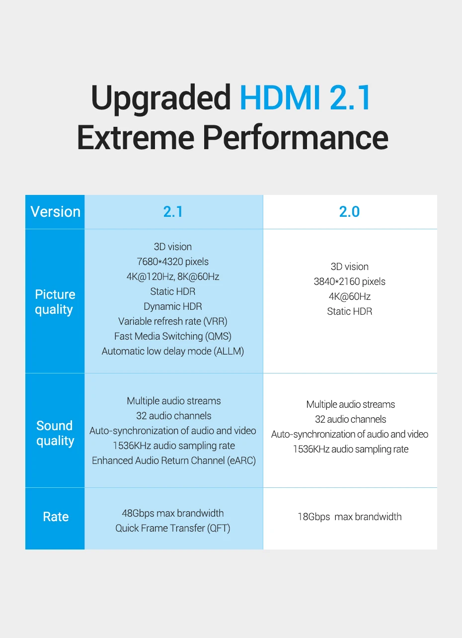 Comprar Vention-Cable HDMI 2,1 de alta velocidad, 8K @ 60Hz, 48gbps, para Apple TV PS4, Cable de interfaz Multimedia de alta definición, 3m