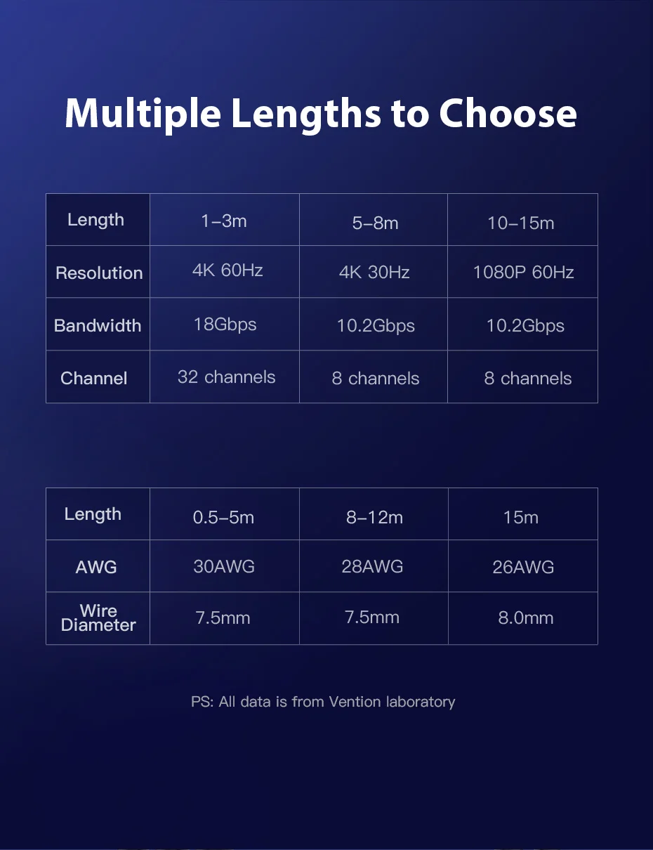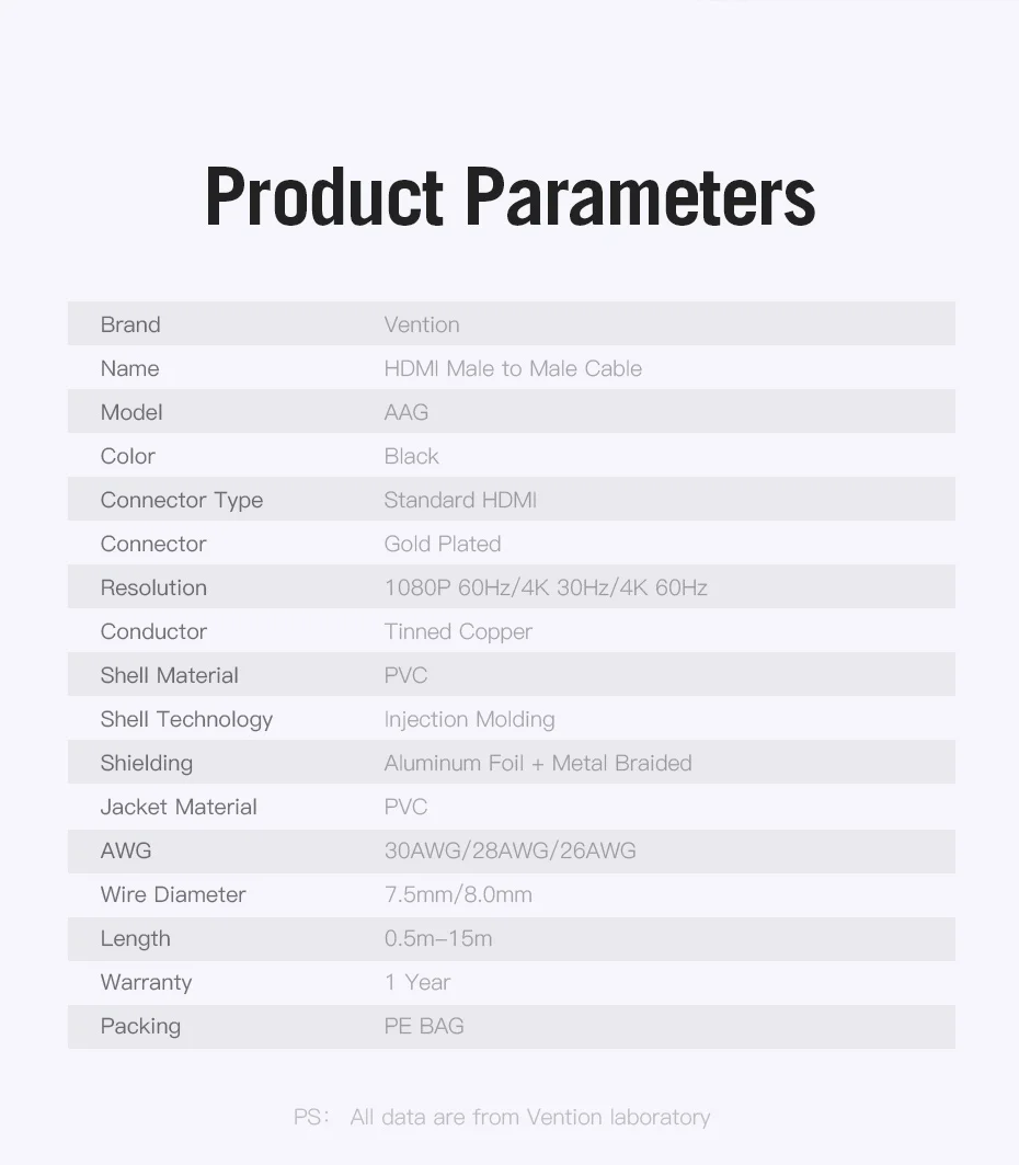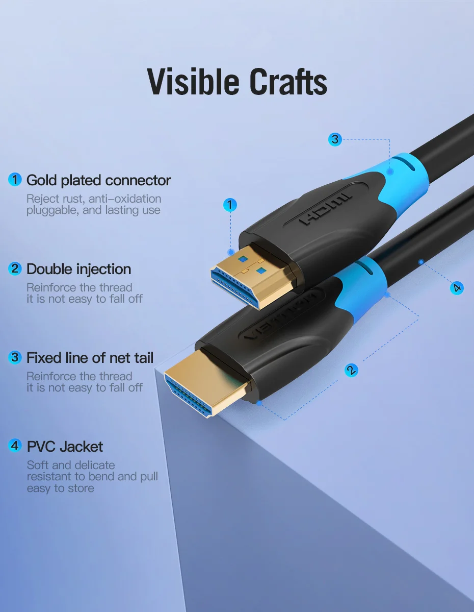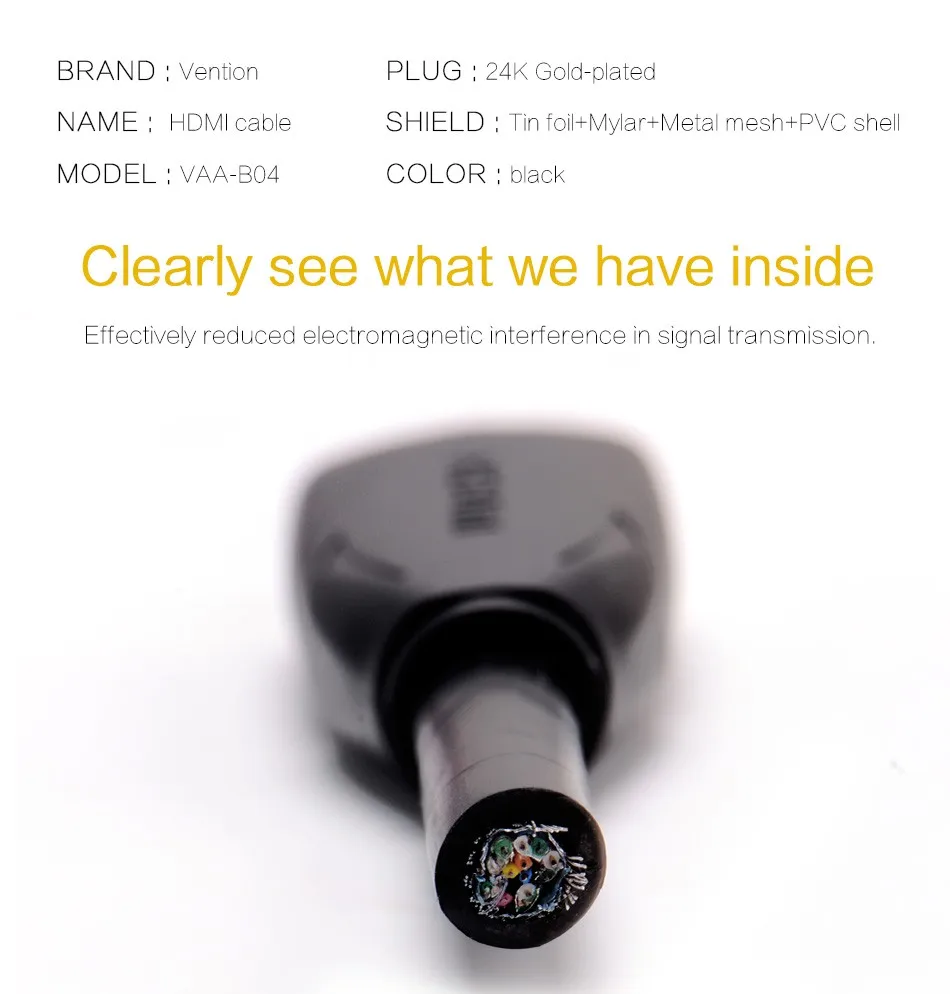 Comprar Vention-Cable HDMI 4K HD 2,0 macho a macho, Divisor de Cable para proyector de TV, conmutador de ordenador portátil, Cable chapado en oro, compatible con HDMI