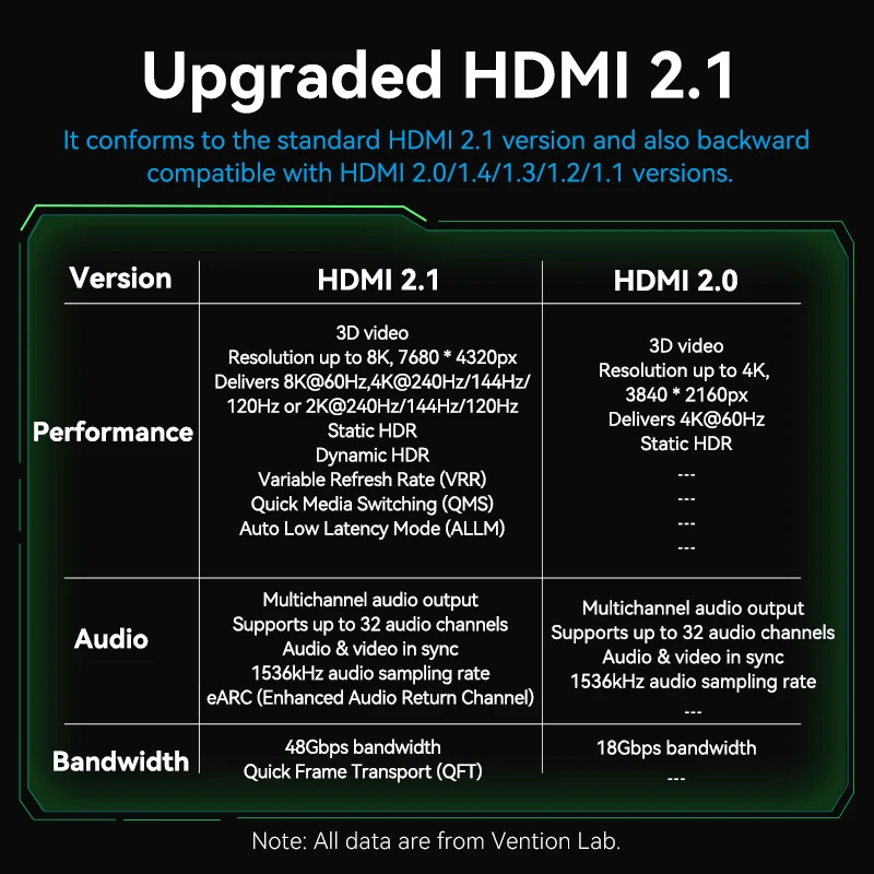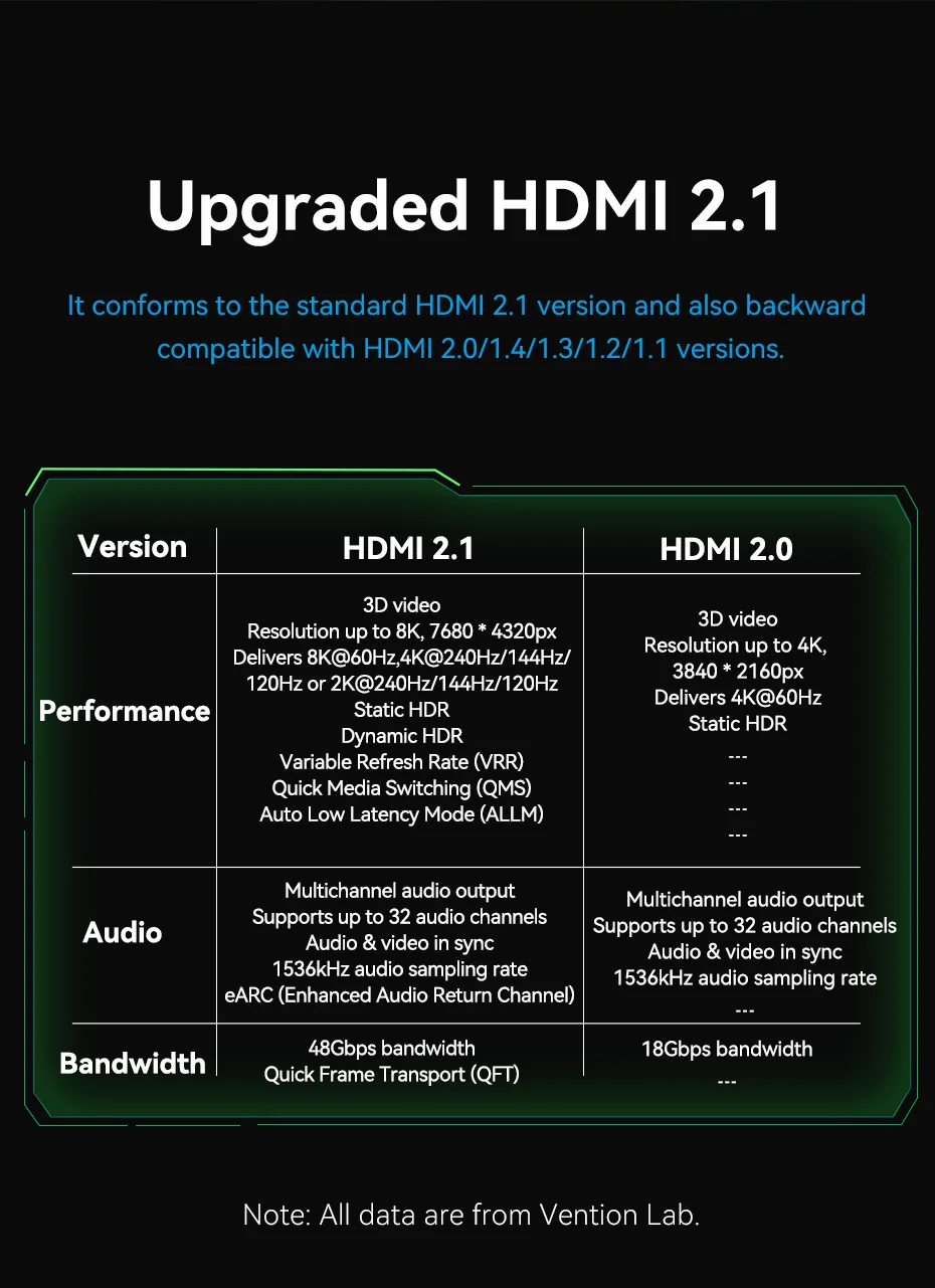 Cumple con la versión estándar HDMI 2.1 y también es compatible con versiones HDMI 2.0/1.4/1.3/1.1.1.1.1.