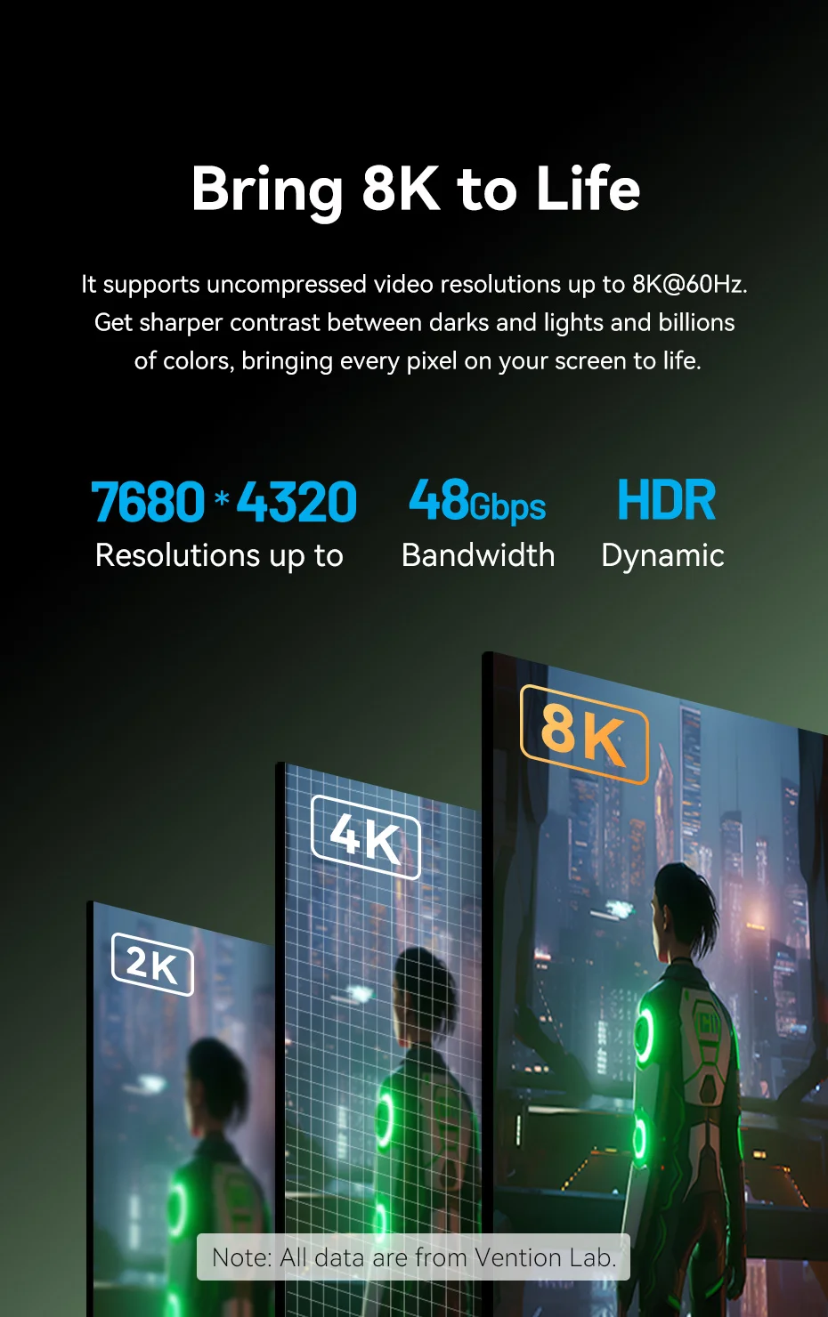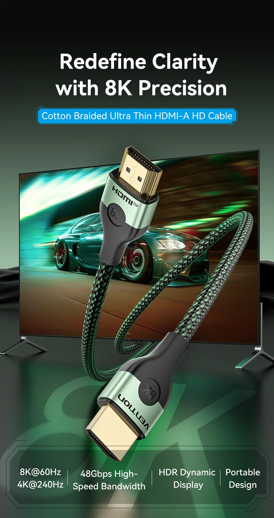 Comprar Vention Cable HDMI 8K para Xiaomi TV Box PS5 48Gbps 8K/60Hz 4K/120Hz Cable HDMI HDR10 + HDCP2.2 para PS4 HDMI Splitter 8K HDMI 2,1