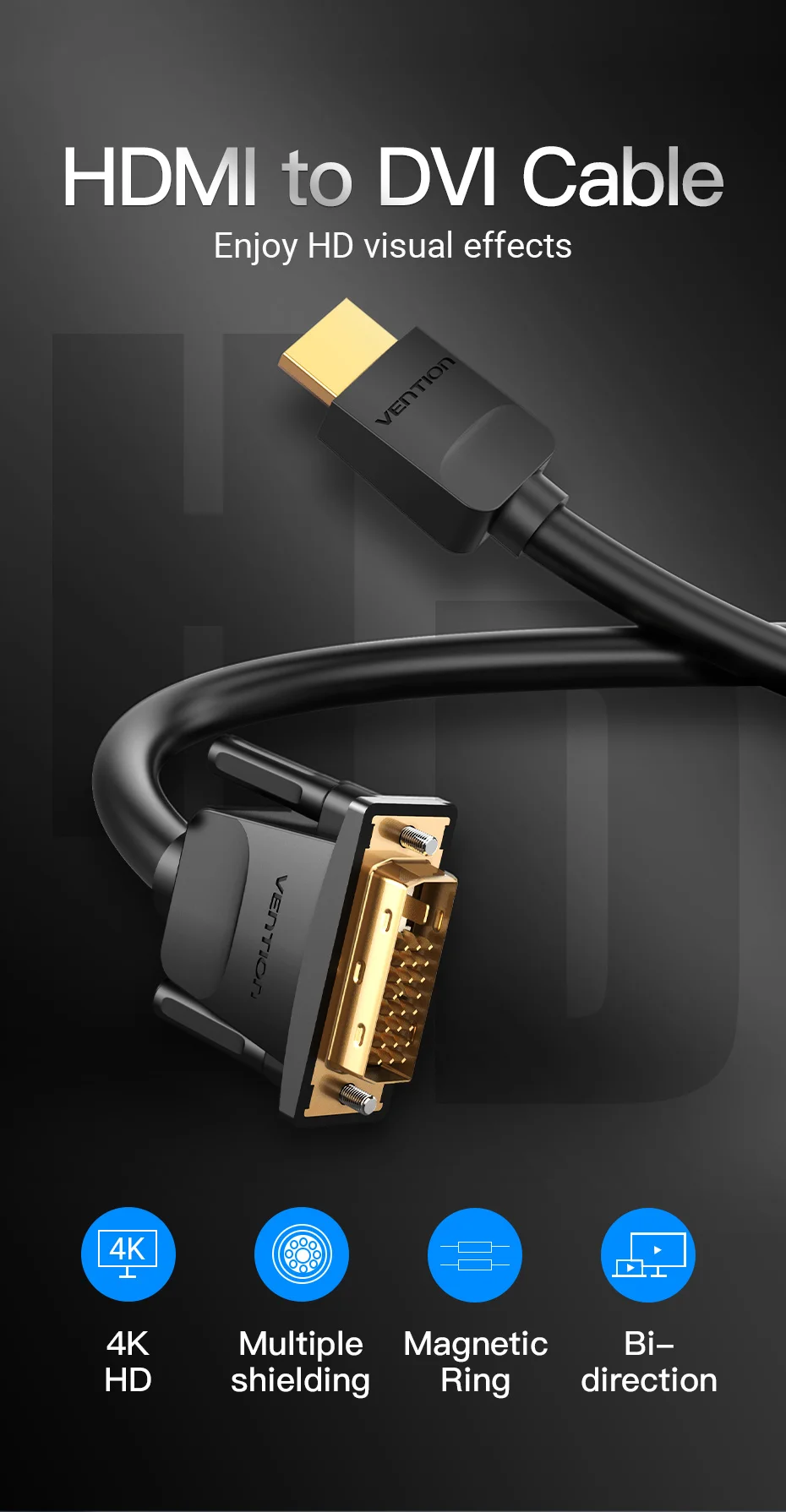 Comprar Vention-Cable HDMI a DVI bidireccional, adaptador macho 24 + 1 DVI-D, convertidor 1080P para Xbox, HDTV, DVD, LCD, DVI a HDMI
