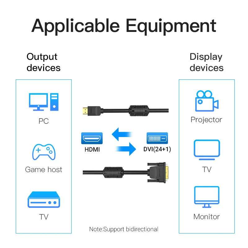 Suitable for standard HDMI interface, DVI (24+1) and DVI (24+5) interface devices universal.