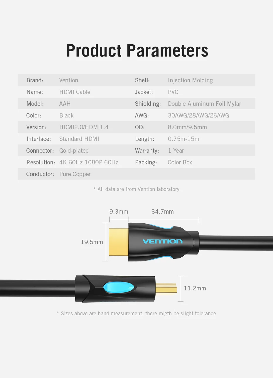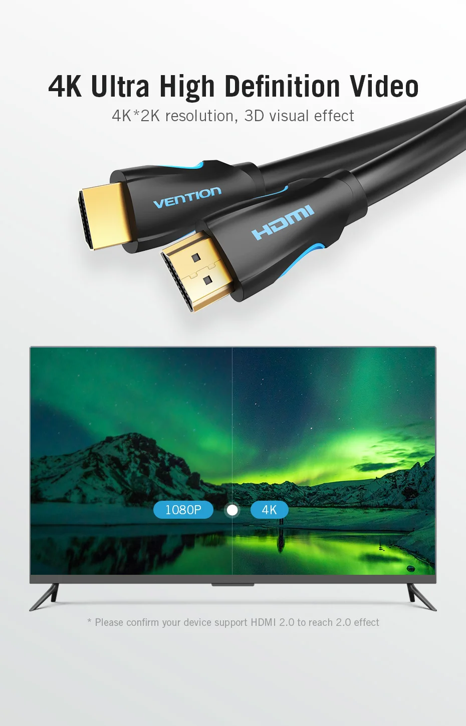 Comprar VEnTIOn-Cable HDMI a HDMI 2,0, 4K, Xiaomi para proyector, Nintendo Switch, PS4, TV, TVBox, xbox 360, 1m, 15m