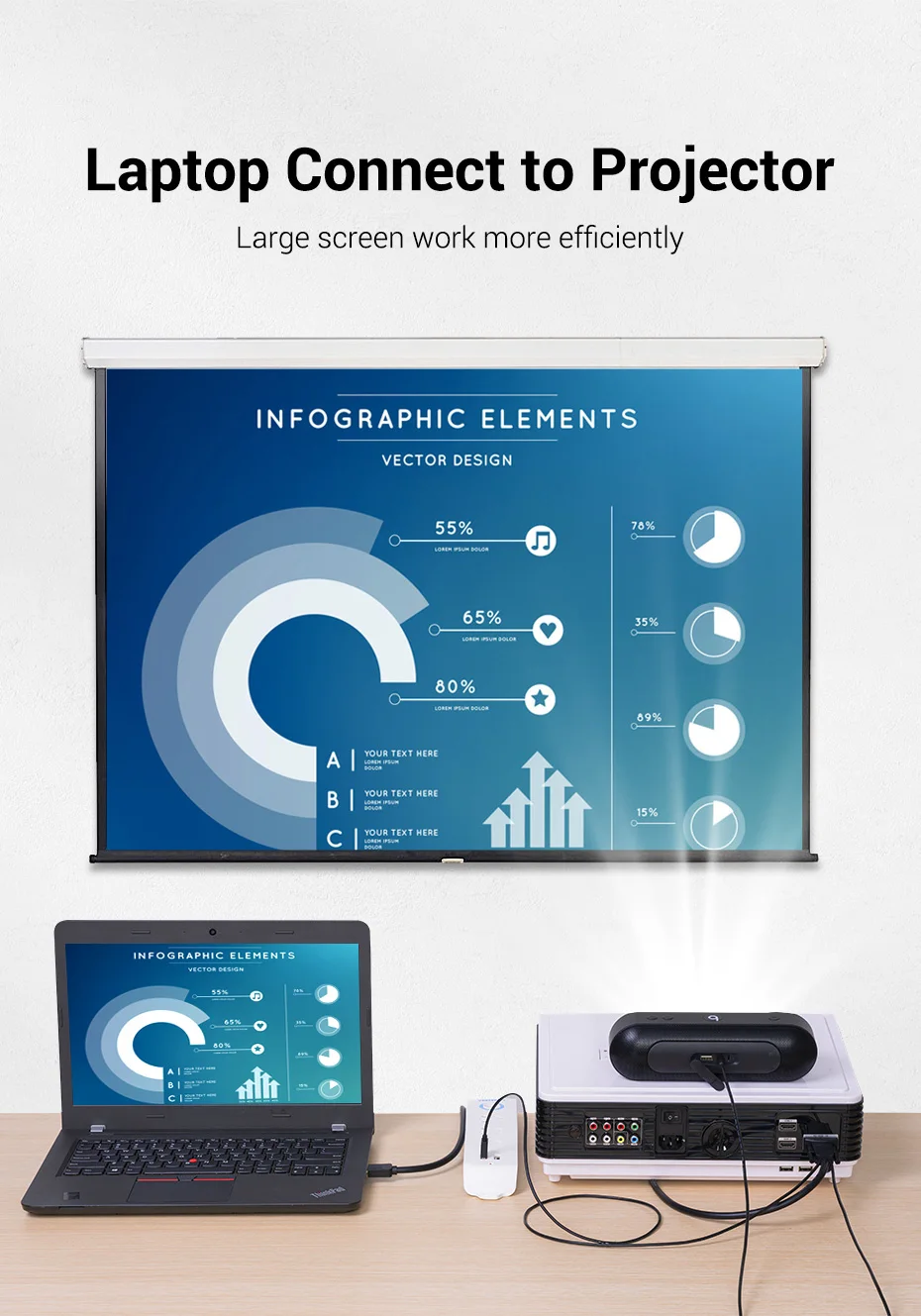 Salida de audio independiente de 3,5mm, altavoz externo y otros equipos, dan la sensación de cine en casa
