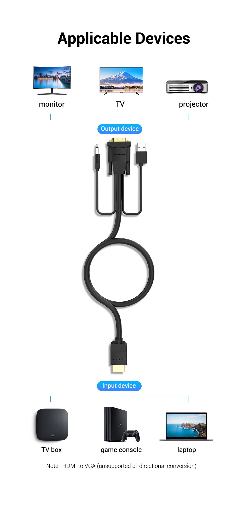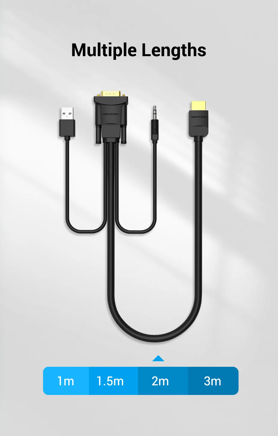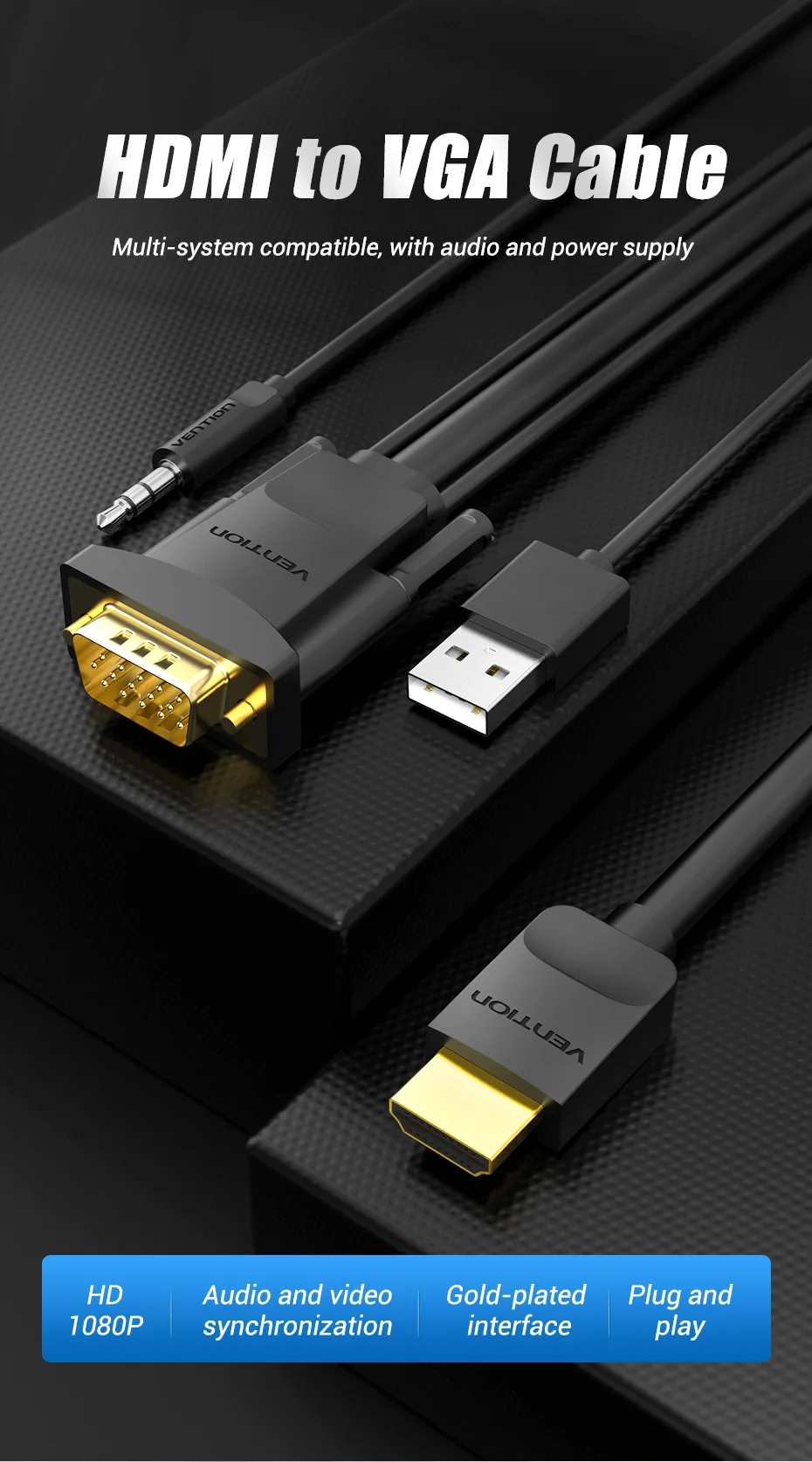 Comprar Vention-Cable HDMI a VGA macho a macho, convertidor de Audio y vídeo de 1080P para PC, TV, proyector