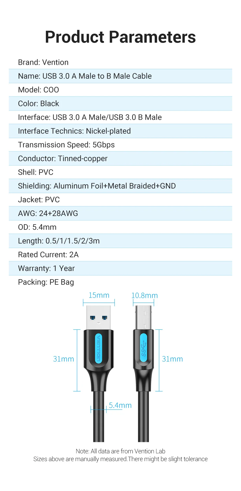 Comprar Vention Cable de impresora USB 3,0 tipo A macho a B Cable macho para Canon Epson HP ZJiang impresora de etiquetas DAC impresora USB 0,5 M-1m 3m