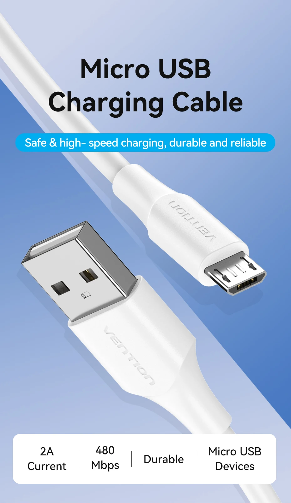 Comprar Vention-Cable Micro USB 3A de carga rápida, Cable de datos USB para teléfono móvil, para Xiaomi, Samsung, HTC, LG, Android, Tablet