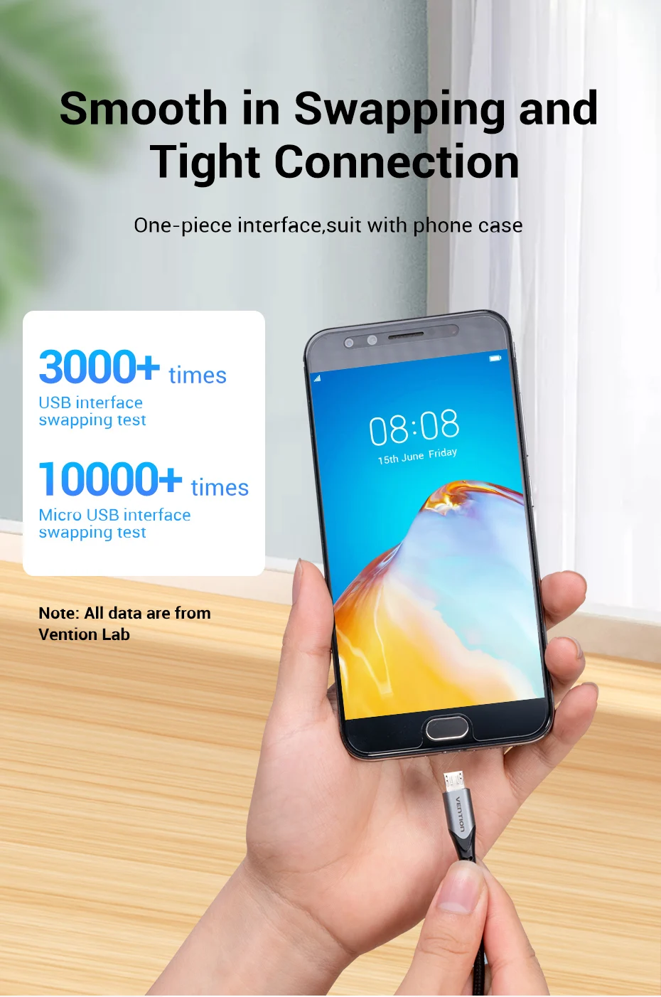 Cargador micro USB Vention para smartphones, tablets y otros dispositivos con conectores micro USB como Motorola,LG,Nexus,Blackberry,Sony,HTC,Nokia,ZTE,Blackberry, teclados inalámbricos y más.