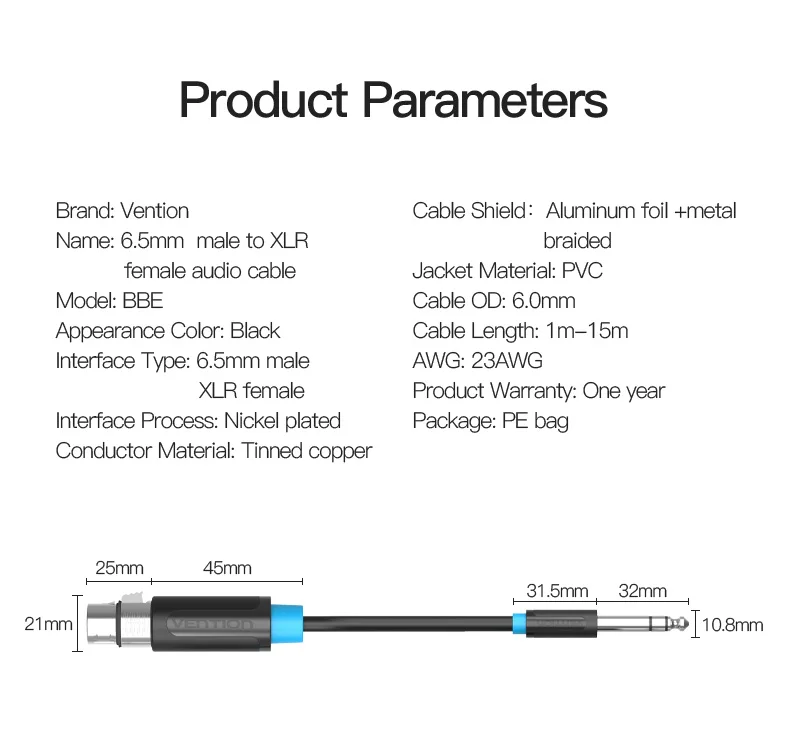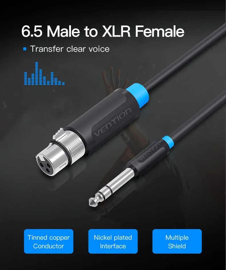 Comprar Vention Cable de micrófono Cable XLR Cable auxiliar Cable cañón Jack 6,5mm macho a XLR hembra Cable para mezclador amplificador estéreo nuevo