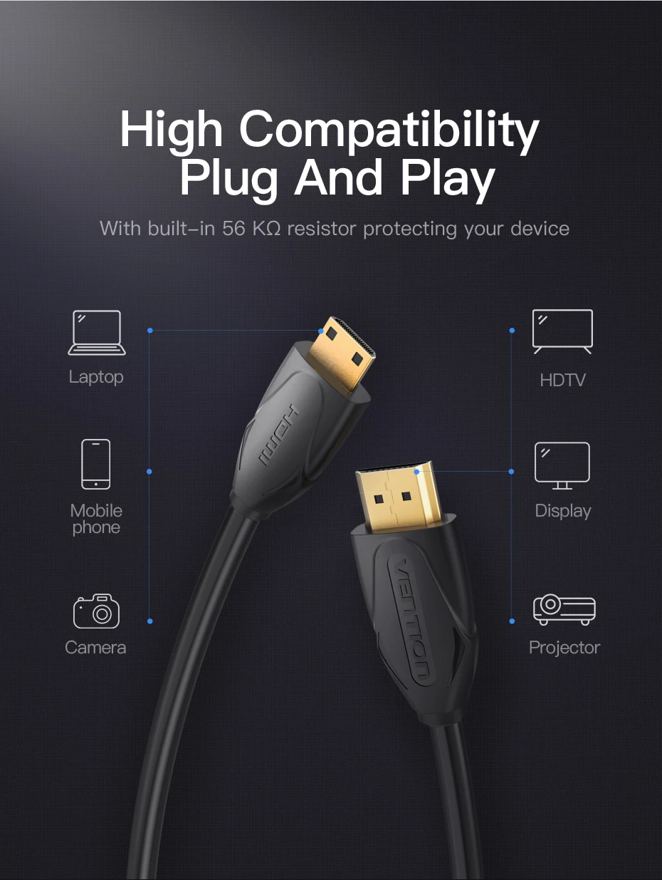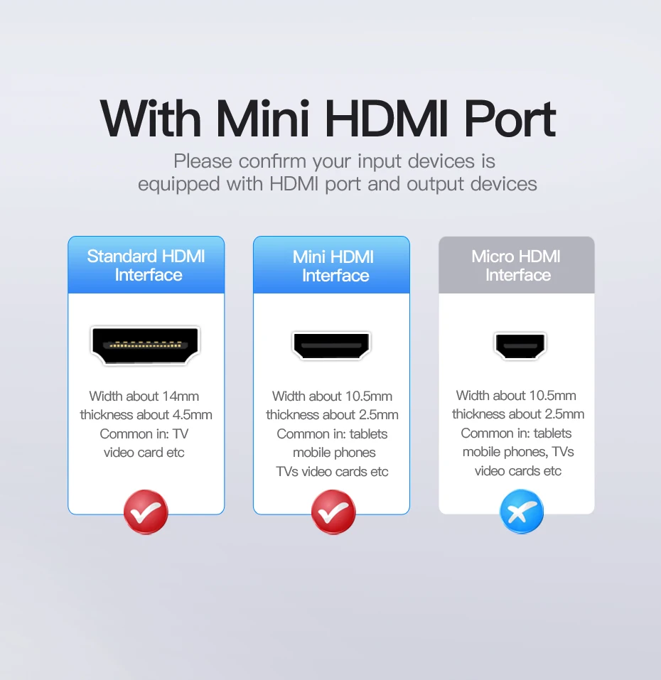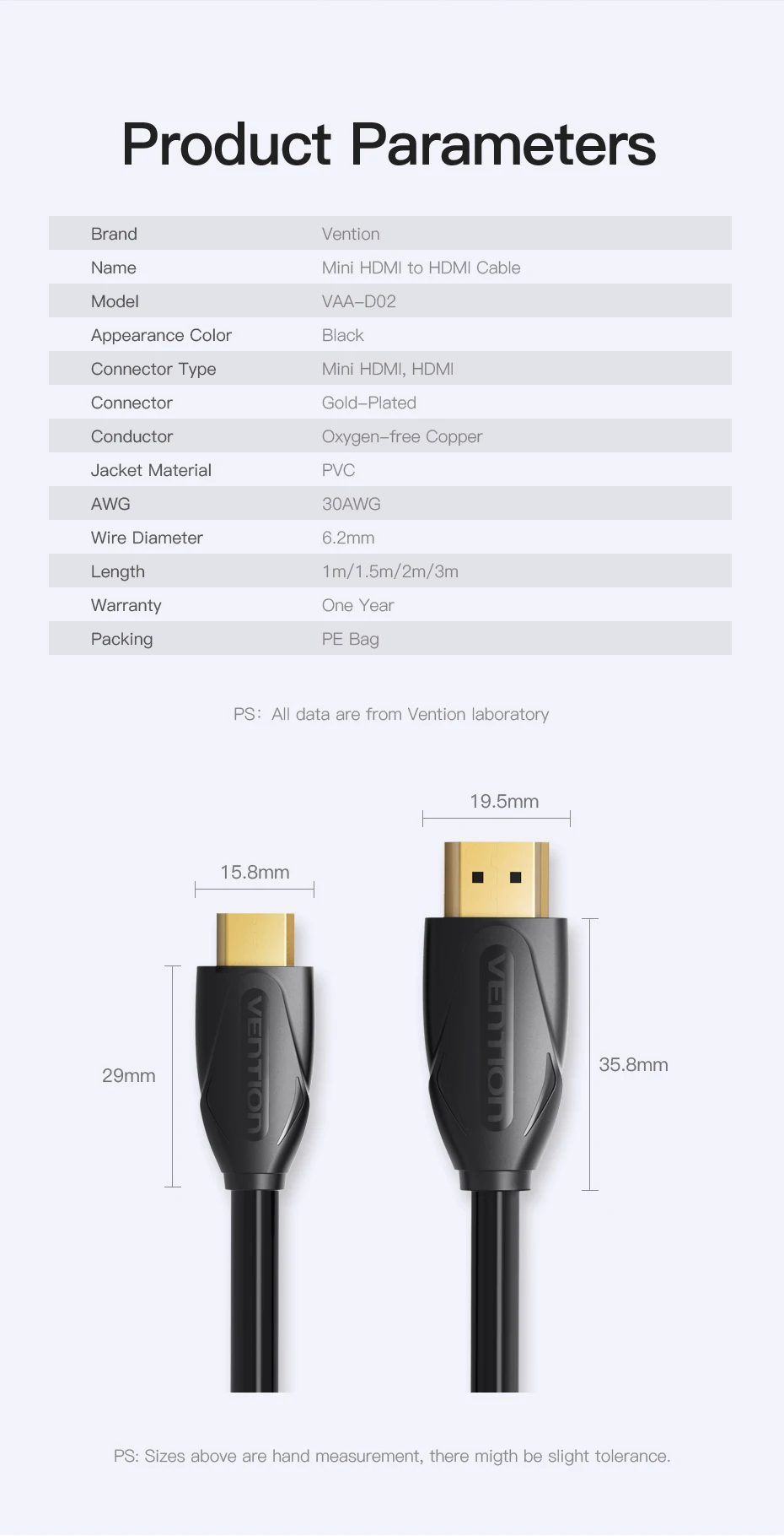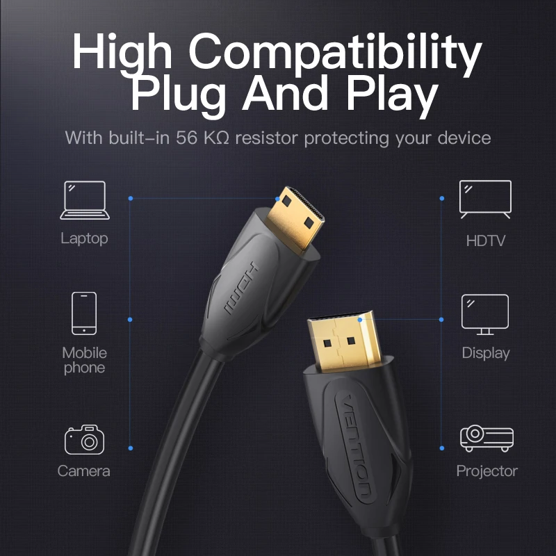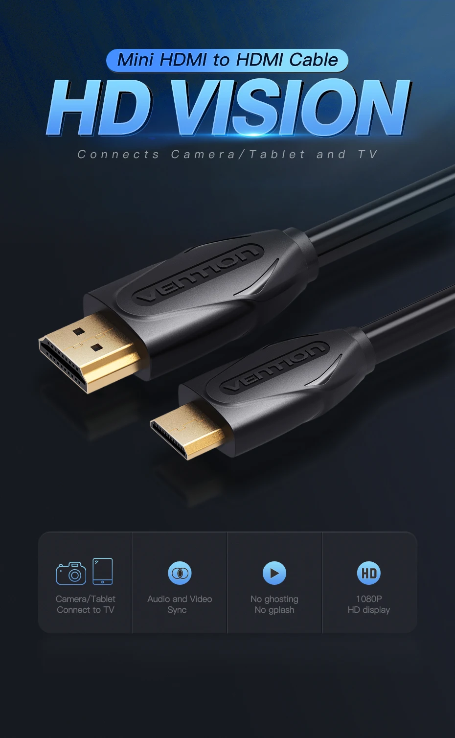Comprar Vention-Cable Mini HDMI a HDMI chapado en oro, 1080P, 1m, 1,5, 2m, para tableta, videocámara, MP4, DVD, chapado en oro