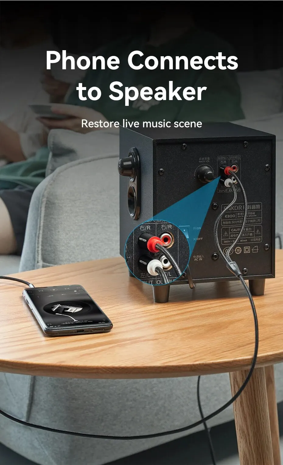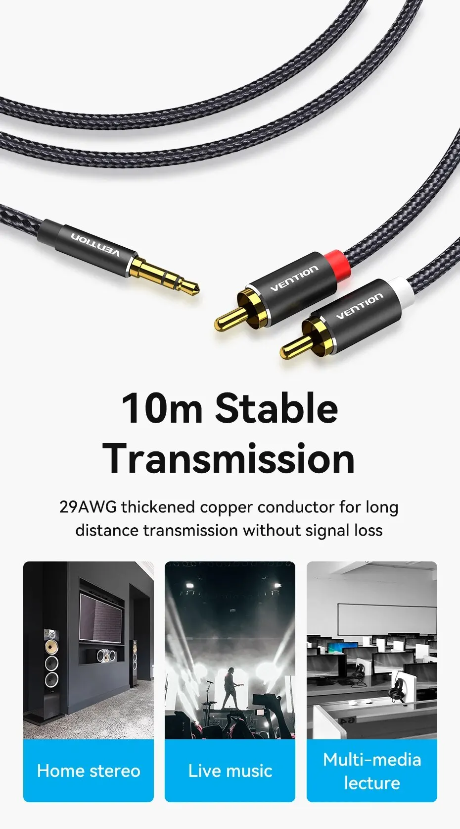 Vention Cable RCA 3,5mm a 2RCA divisor RCA Jack 3,5 Cable de Audio RCA para amplificador de teléfono inteligente Cable auxiliar de cine en casa RCA