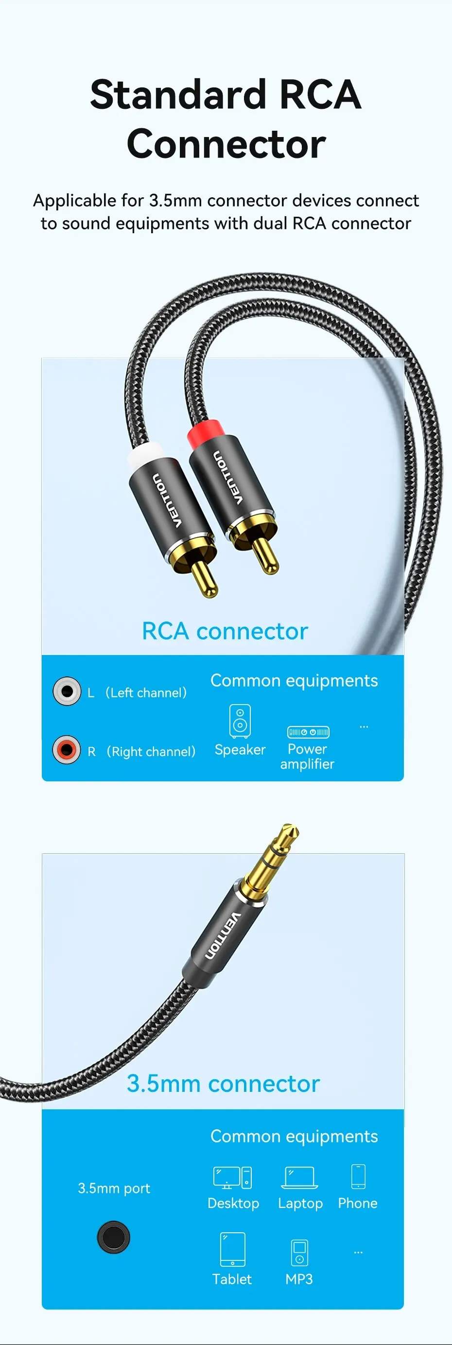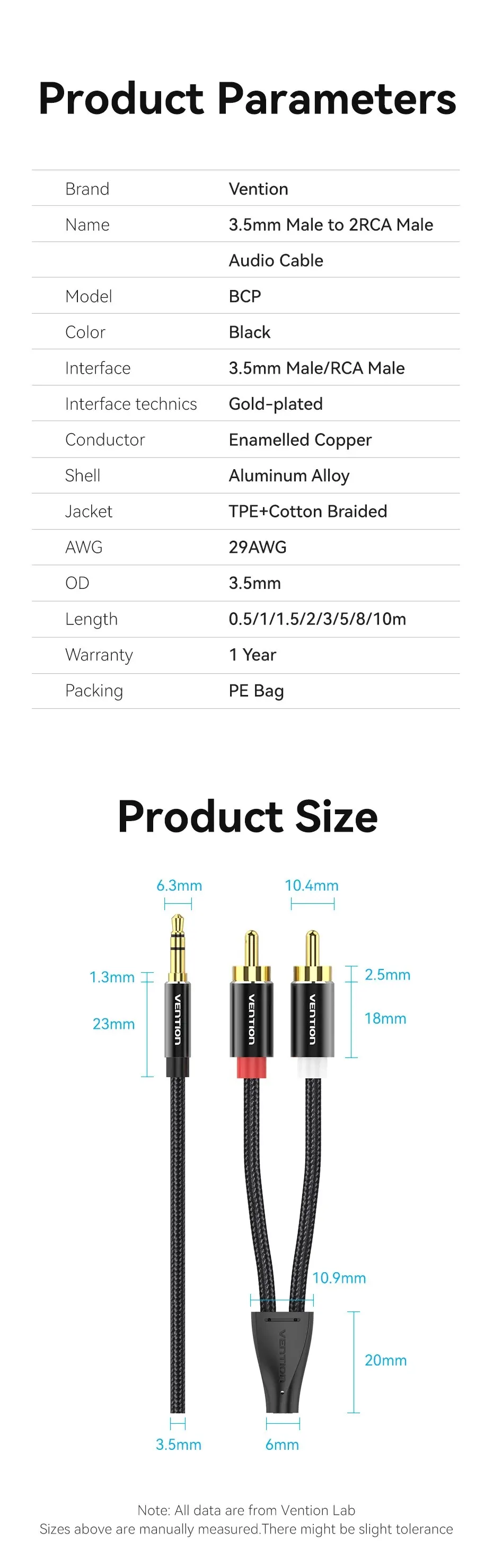 Color:3.5 to 2RCA Length:3m