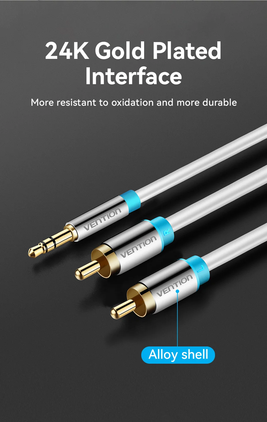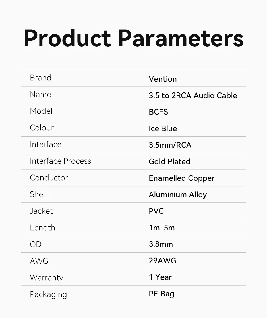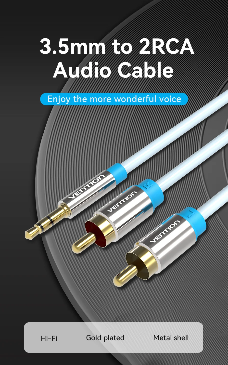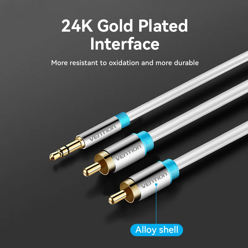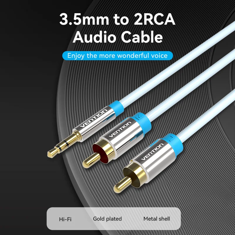Vention-Cable RCA de 3,5mm a 2RCA, divisor, conector 3,5, Cable de Audio RCA de 1m para amplificador de teléfono inteligente, Cable auxiliar de cine en casa