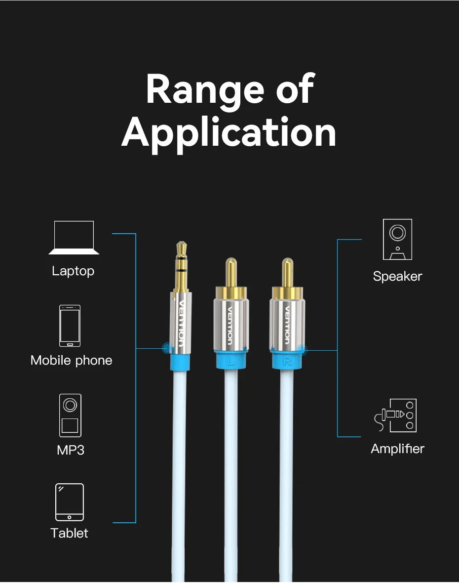 Comprar Vention-Cable RCA de 3,5mm a 2RCA, divisor, conector 3,5, Cable de Audio RCA de 1m para amplificador de teléfono inteligente, Cable auxiliar de cine en casa