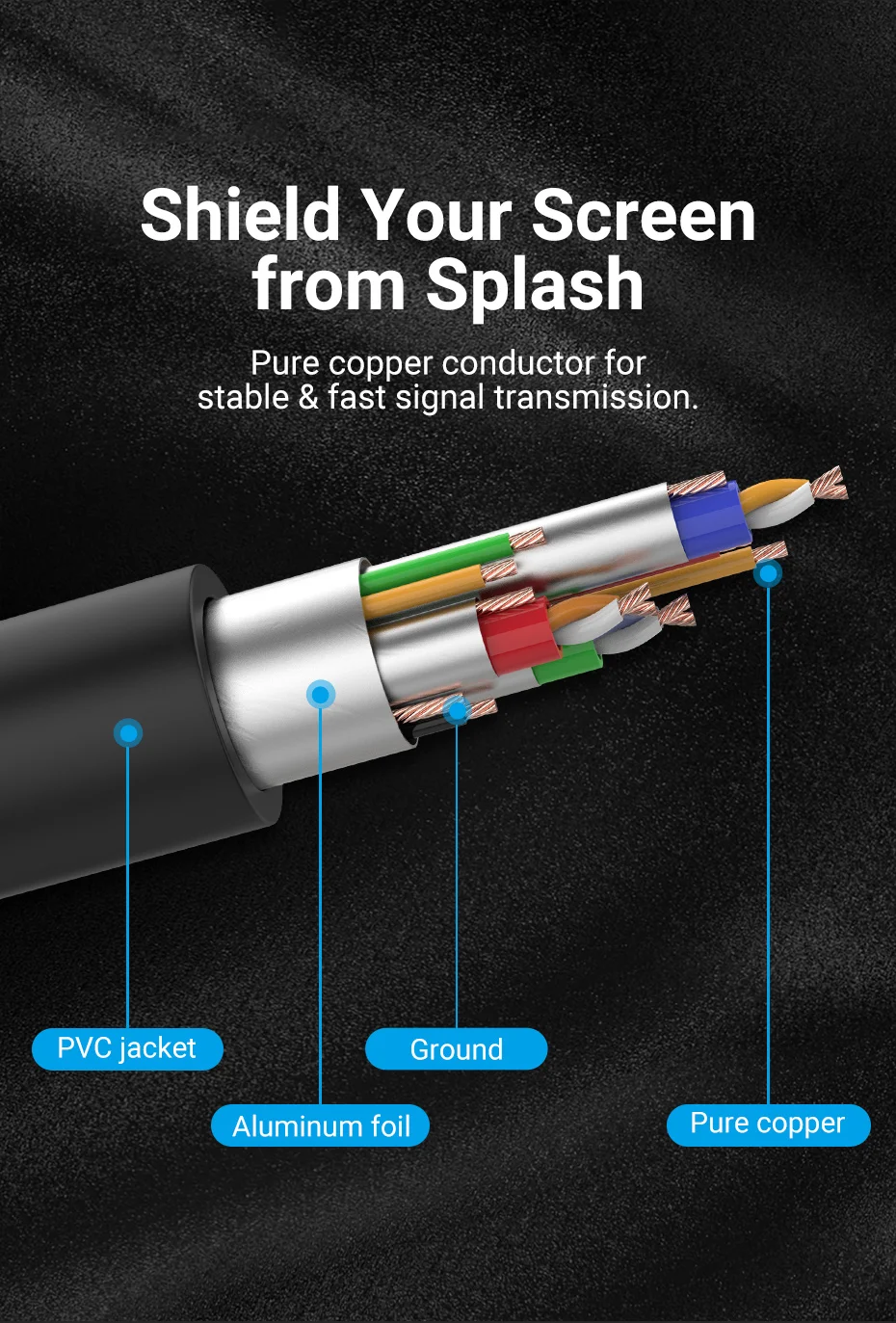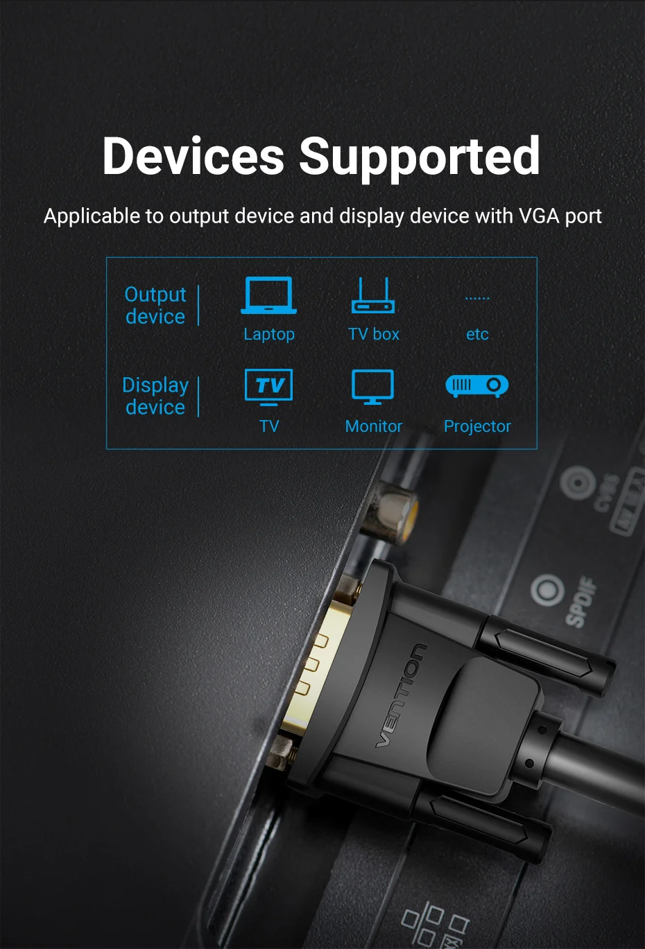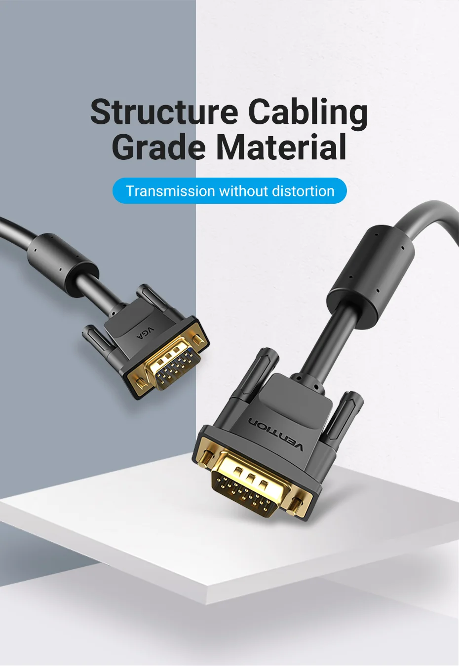 Comprar Vention-Cable trenzado de blindaje VGA a VGA para HDTV, PC, portátil, TV Box, proyector, Monitor, Cable VGA, 3 + 6, 1,5 m, 2m, 3m, 5m, 20m