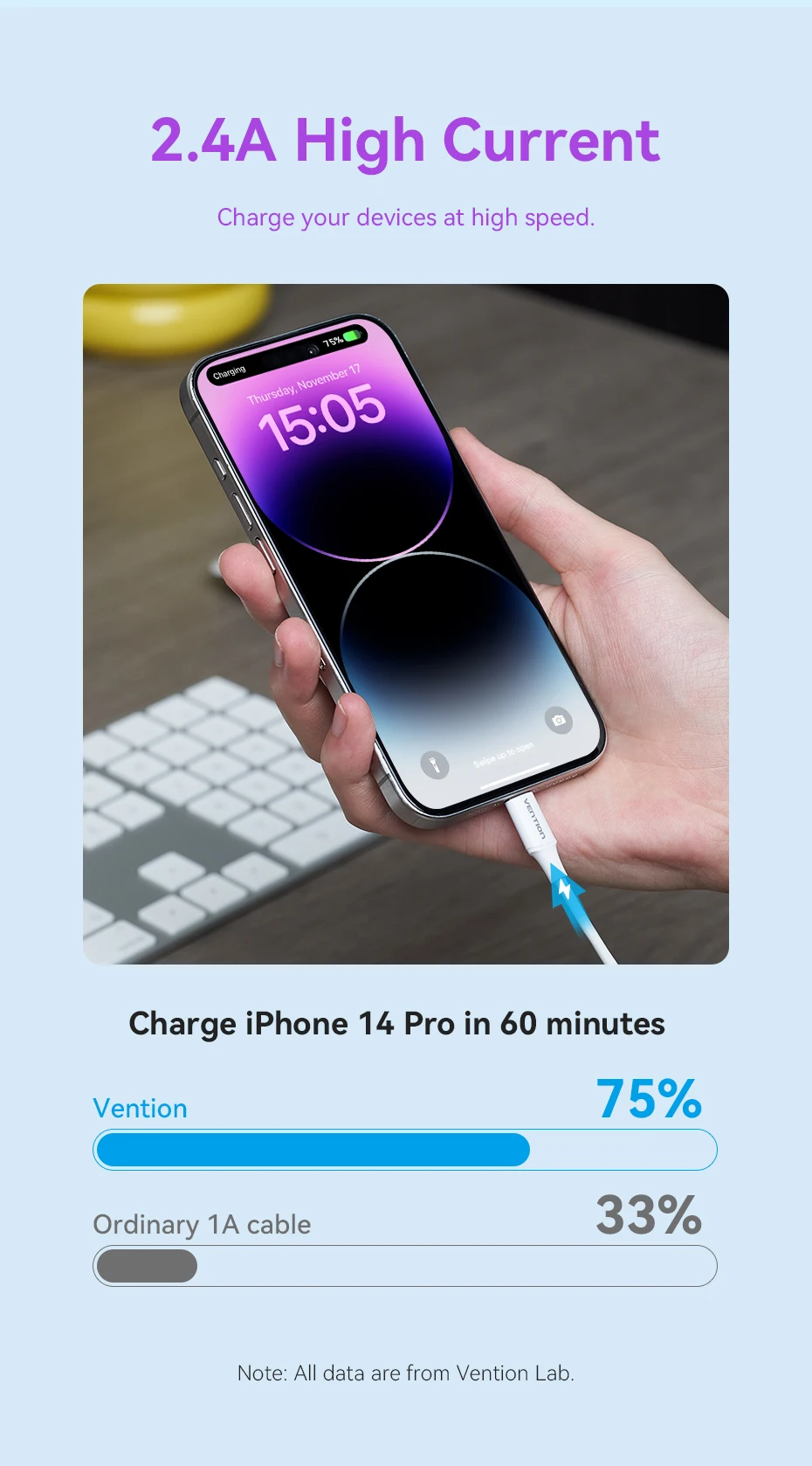 2,4A de alta corrienteCargue sus dispositivos a alta velocidad.