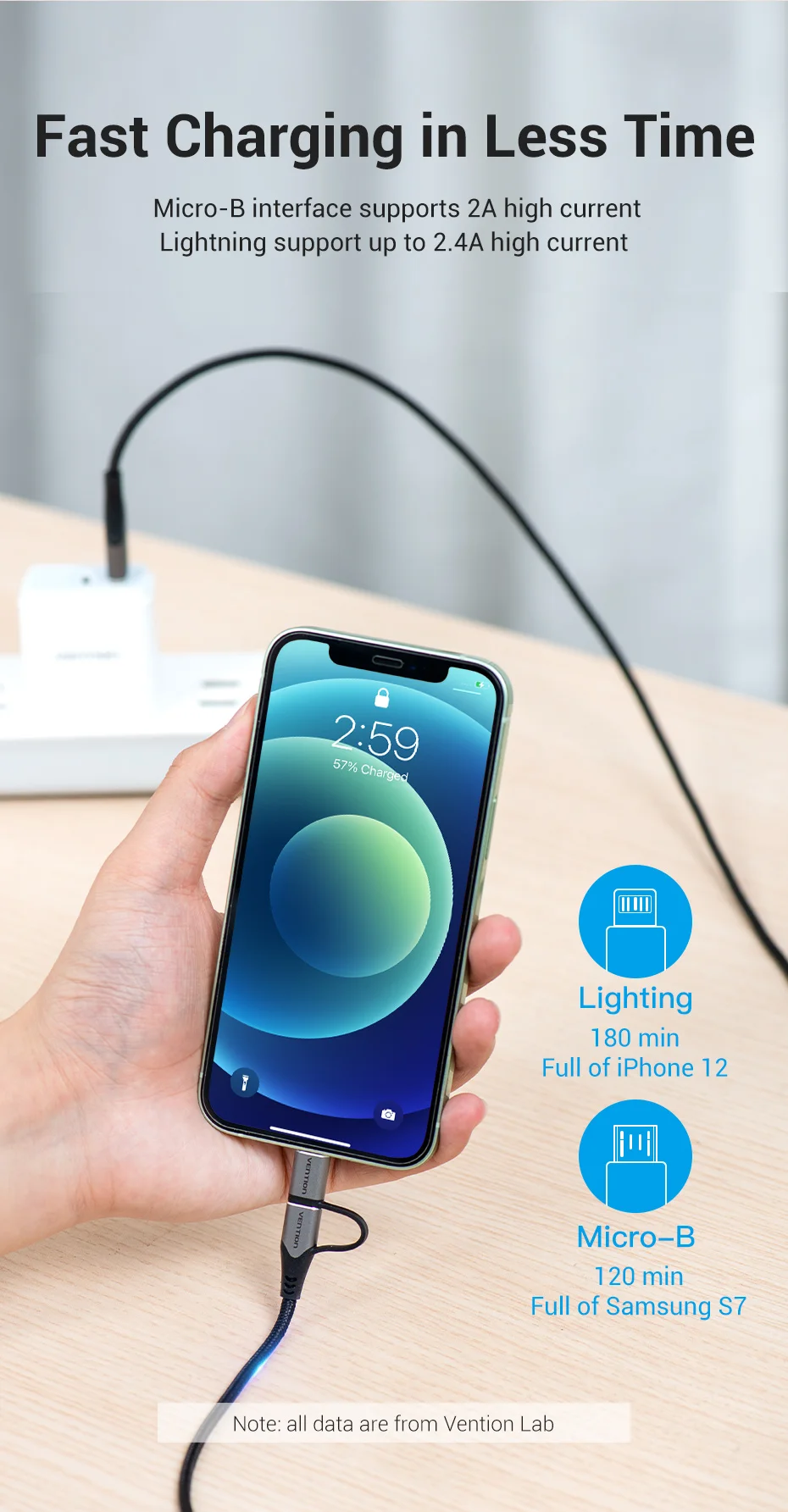 Comprar Vention-Cable USB MFi para iPhone 12 Pro Max XR 11, Cargador rápido 2 en 1, Cable de datos Micro USB para Samsung y Xiaomi