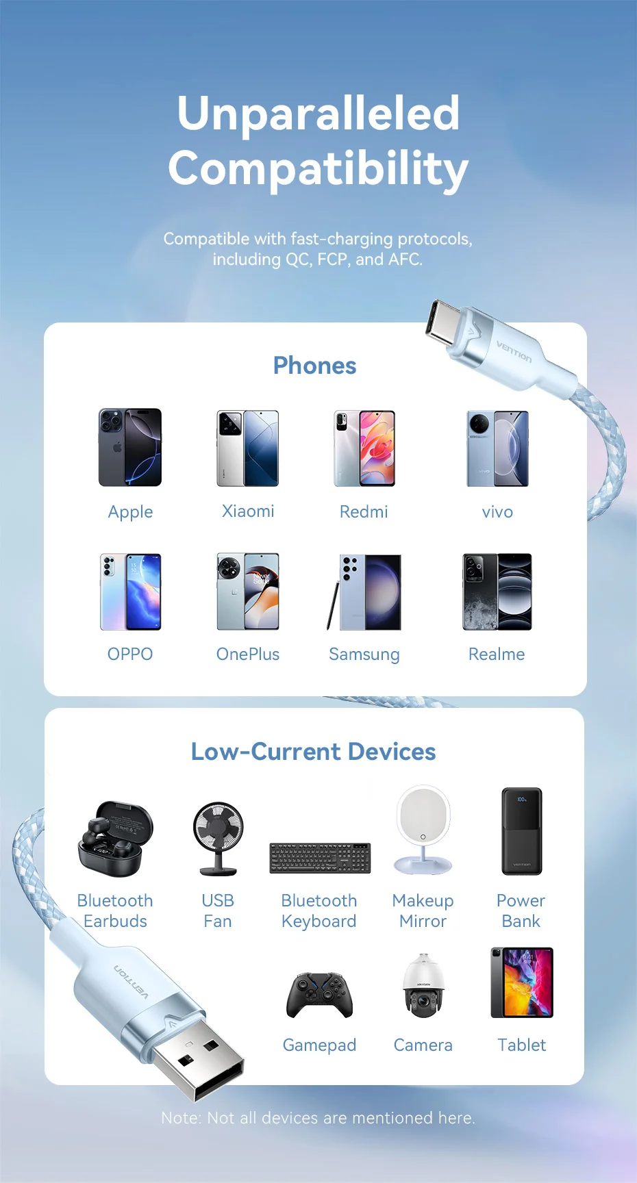 Comprar Vention Cable USB tipo C 3A para Xiaomi Redmi Note 14 Cable USB C para Samsung Cable de carga rápida USB-C Cable de carga de teléfono móvil