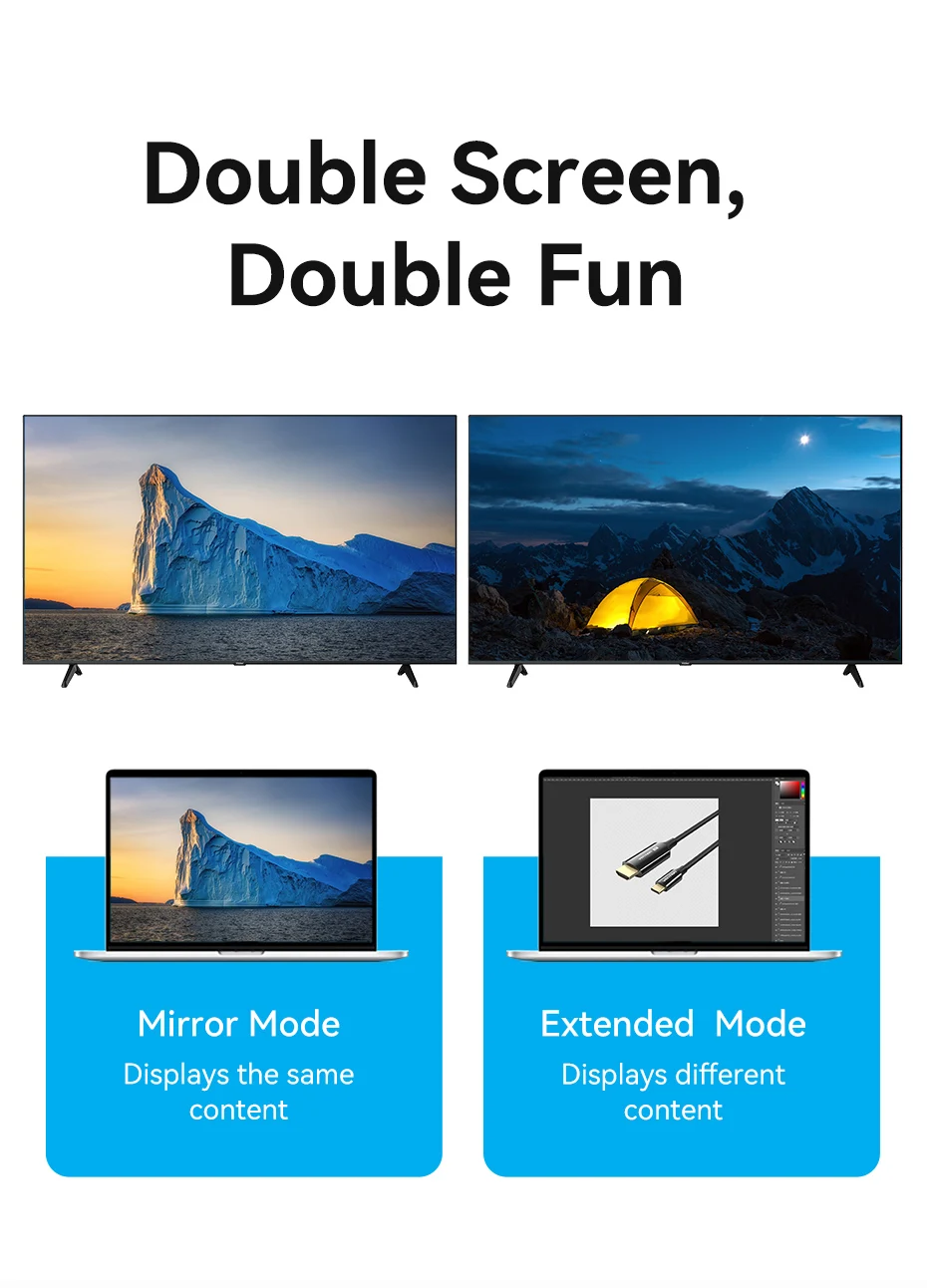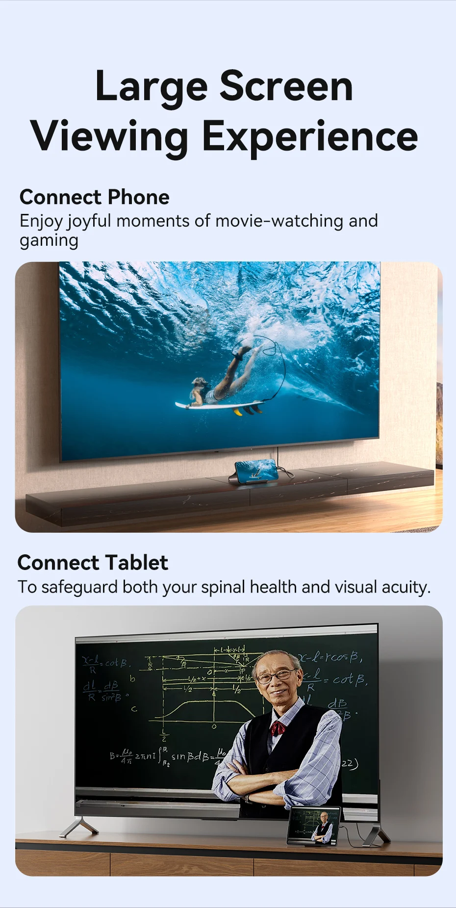 -Plug-and-play, hasta 4K @ 30Hz de resolución. TV/monitor/proyector compatible con HDMI para transferir vídeo y audio.