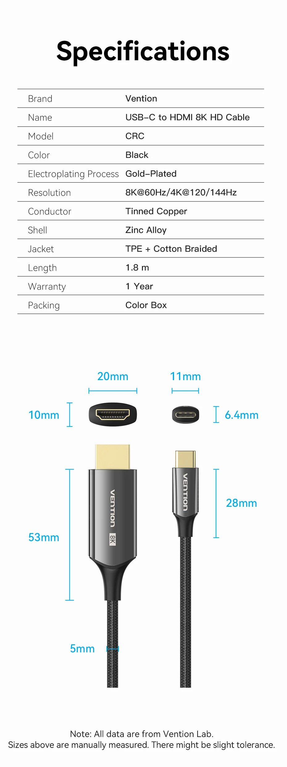 Comprar Vention-Cable USB tipo C a HDMI, adaptador Thunderbolt 3, 8K, para MacBook, Samsung Galaxy S10/S9, Huawei Honor
