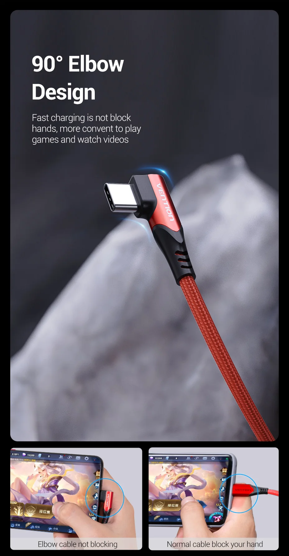 La carga rápida no bloquea las manos, más convento para jugar y ver videos.