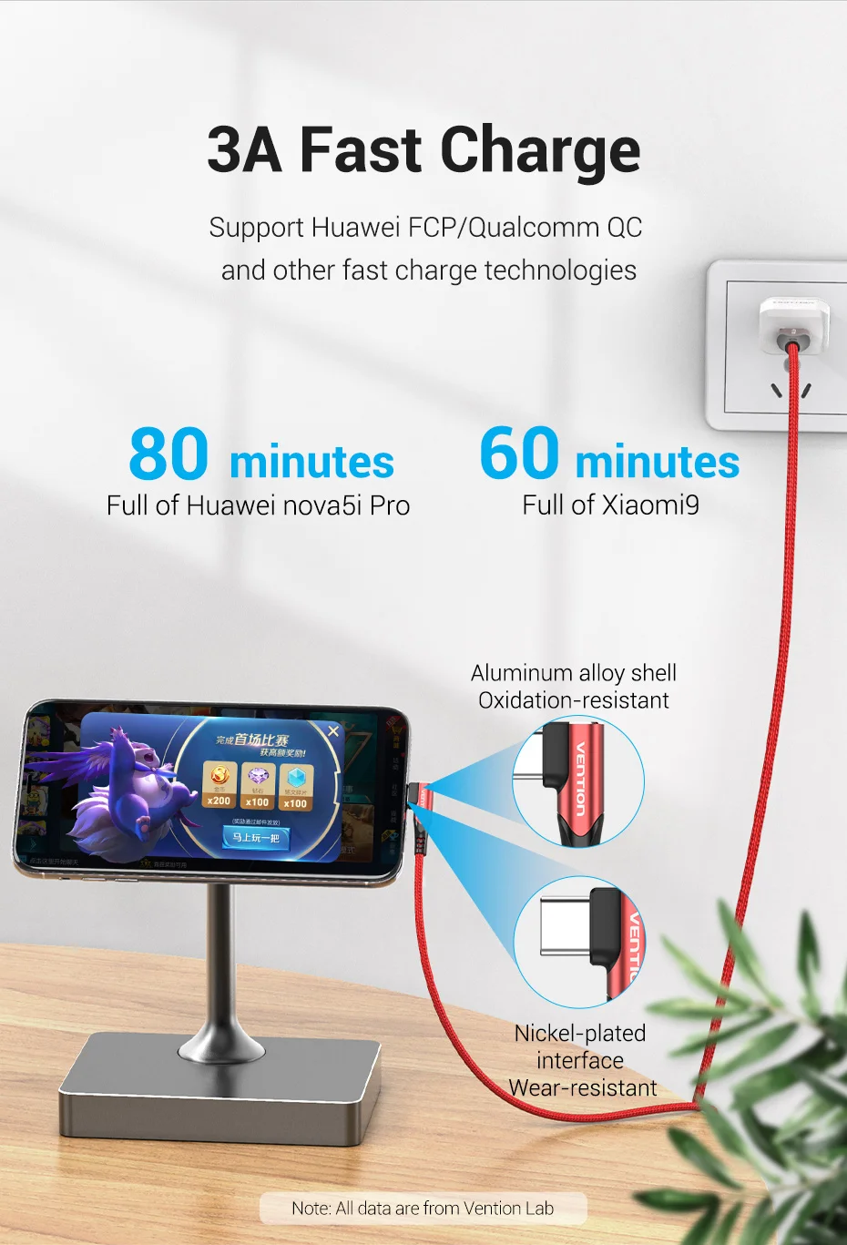 Compatible con Huawei FCP/Qualcomm QC y otras tecnologías de carga rápida.