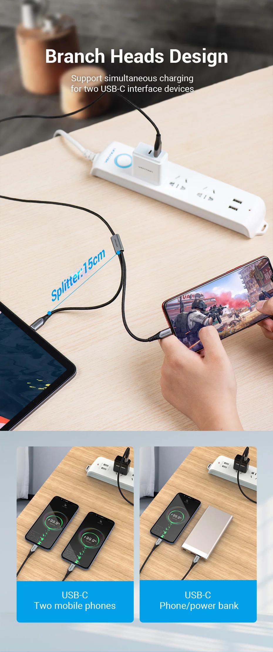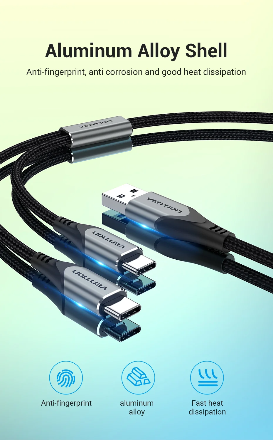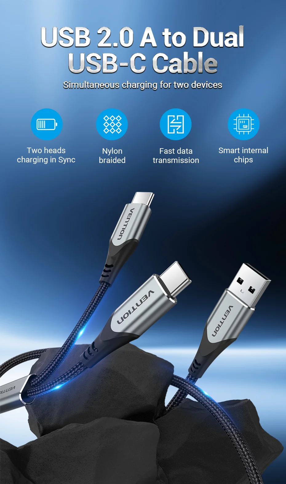 Comprar Vention Cable USB tipo C para Huawei P40 Pro Mate 30 Pro Cable de carga USB rápido USB C Dual para Xiaomi Samsung S20 Cable tipo C