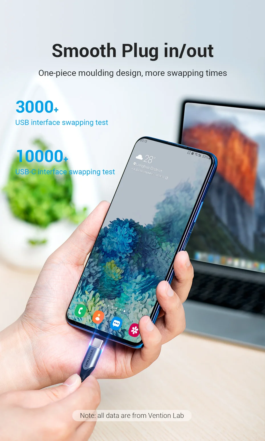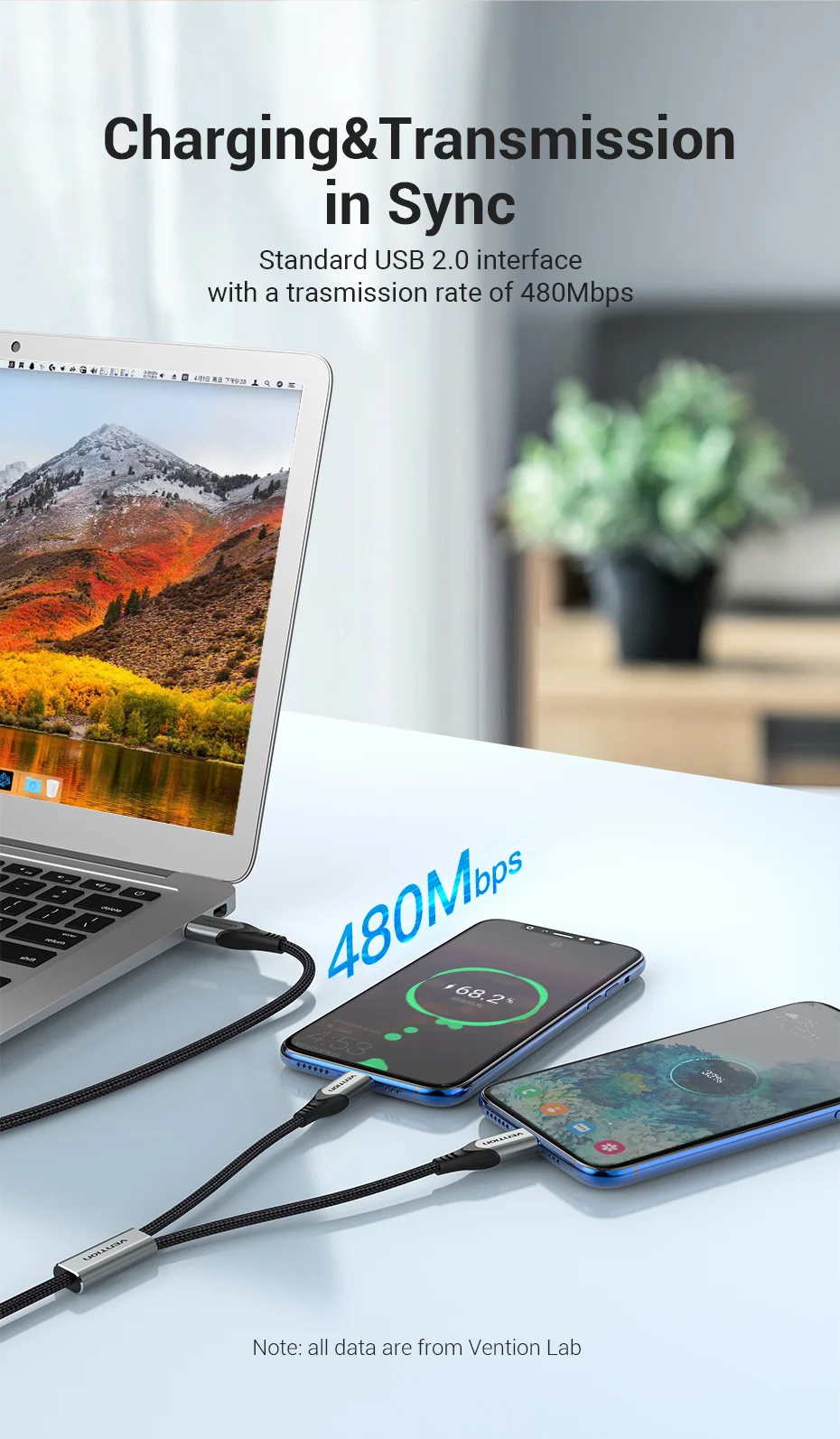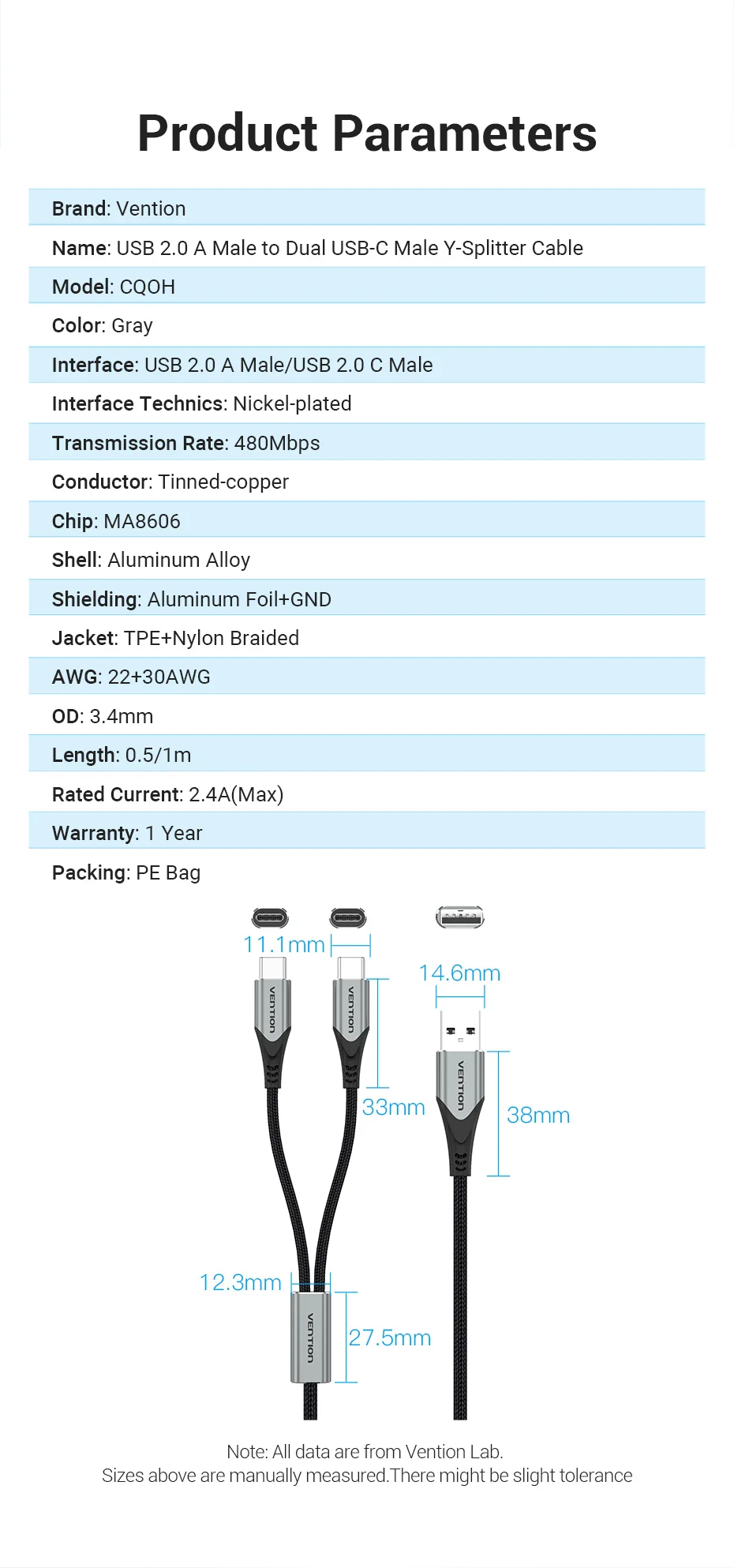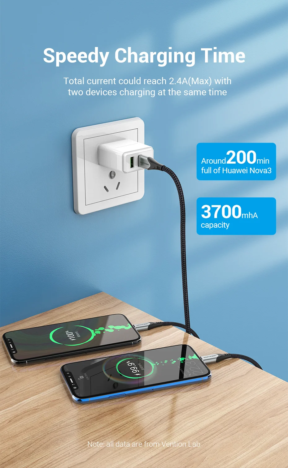 Comprar Vention Cable USB tipo C para Huawei P40 Pro Mate 30 Pro Cable de carga USB rápido USB C Dual para Xiaomi Samsung S20 Cable tipo C