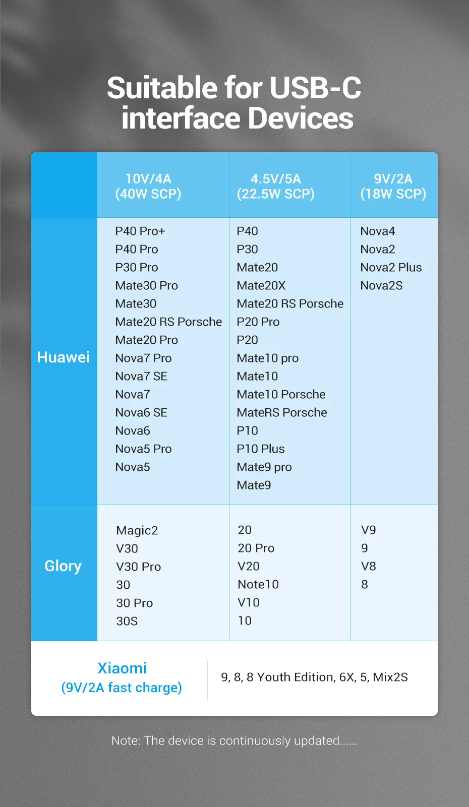 5A (Max) de alta corriente de apoyo Huawei SCP/Qualcomm QC y otros de carga rápida de las tecnologías