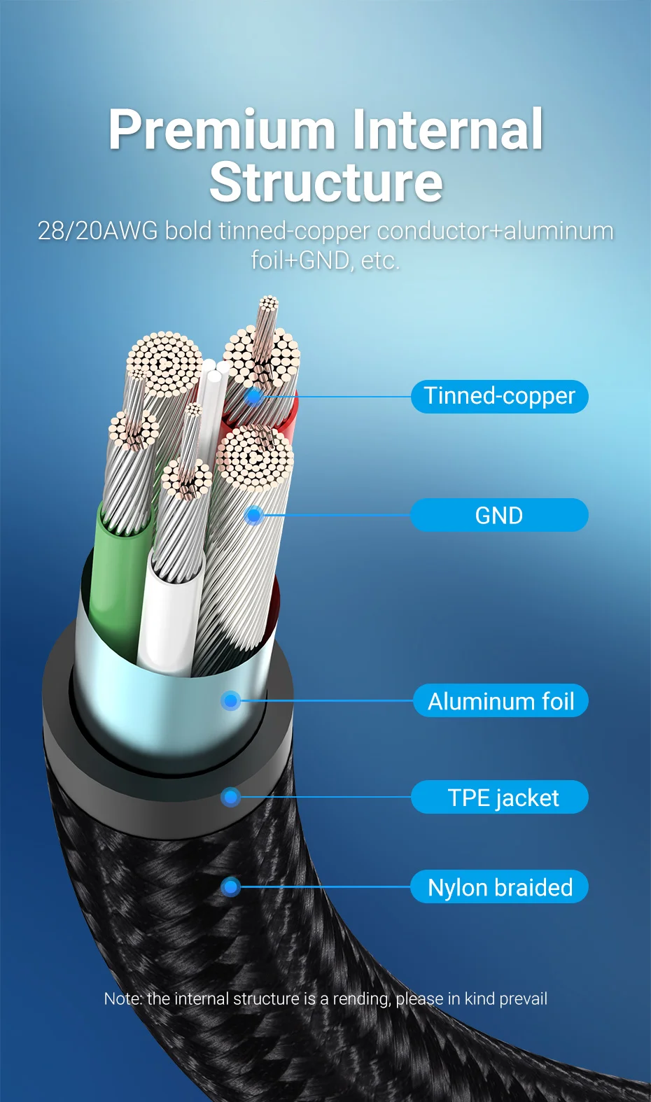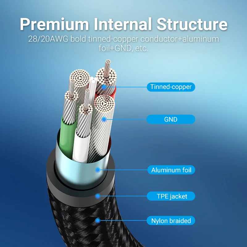 28/20AWG conductor de cobre estañado en negrita + papel de aluminio + GND, etc.