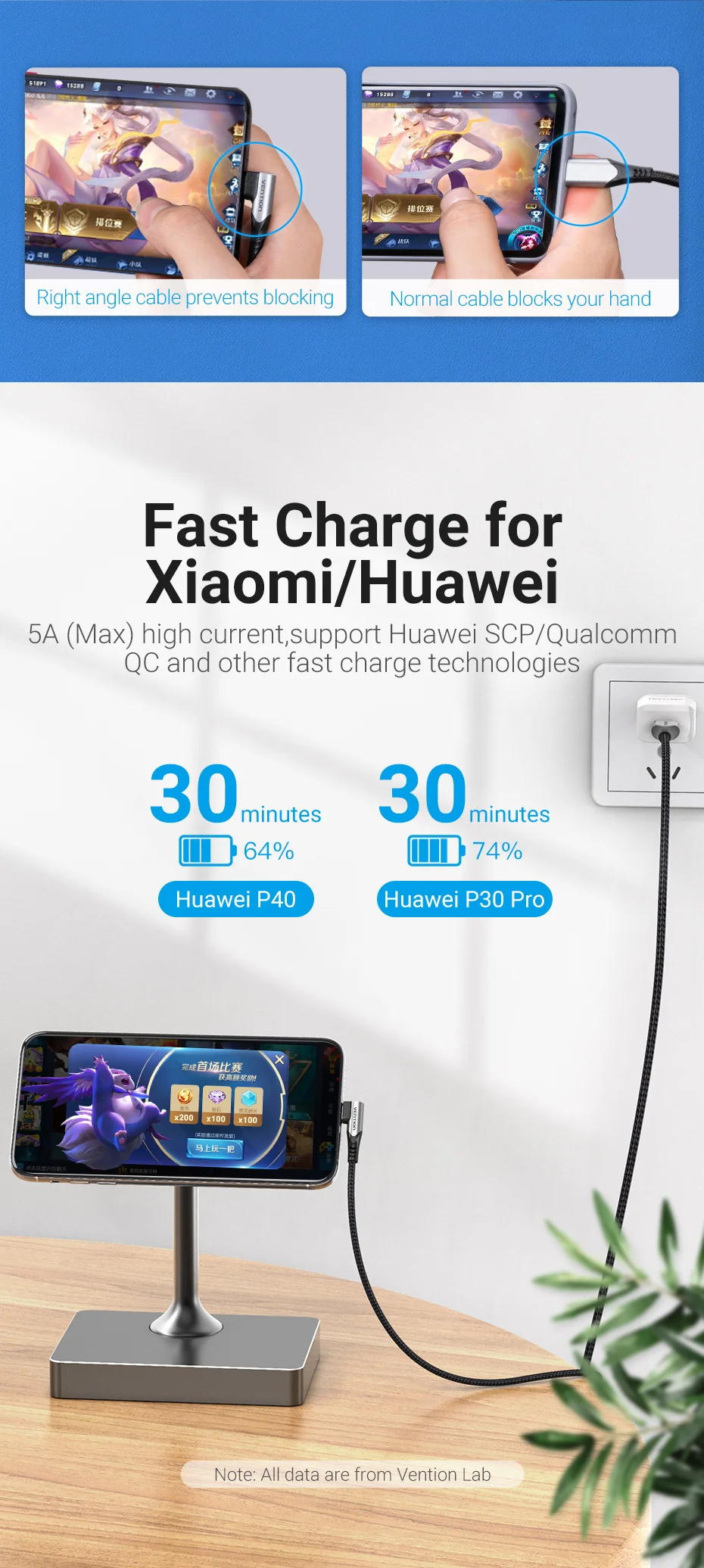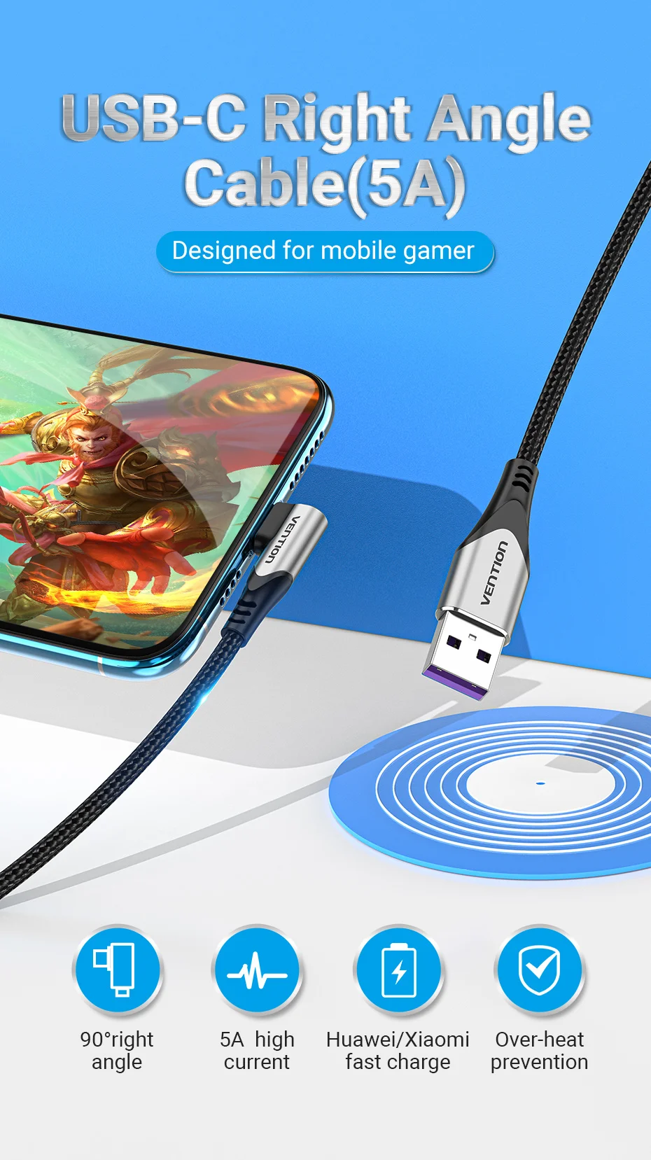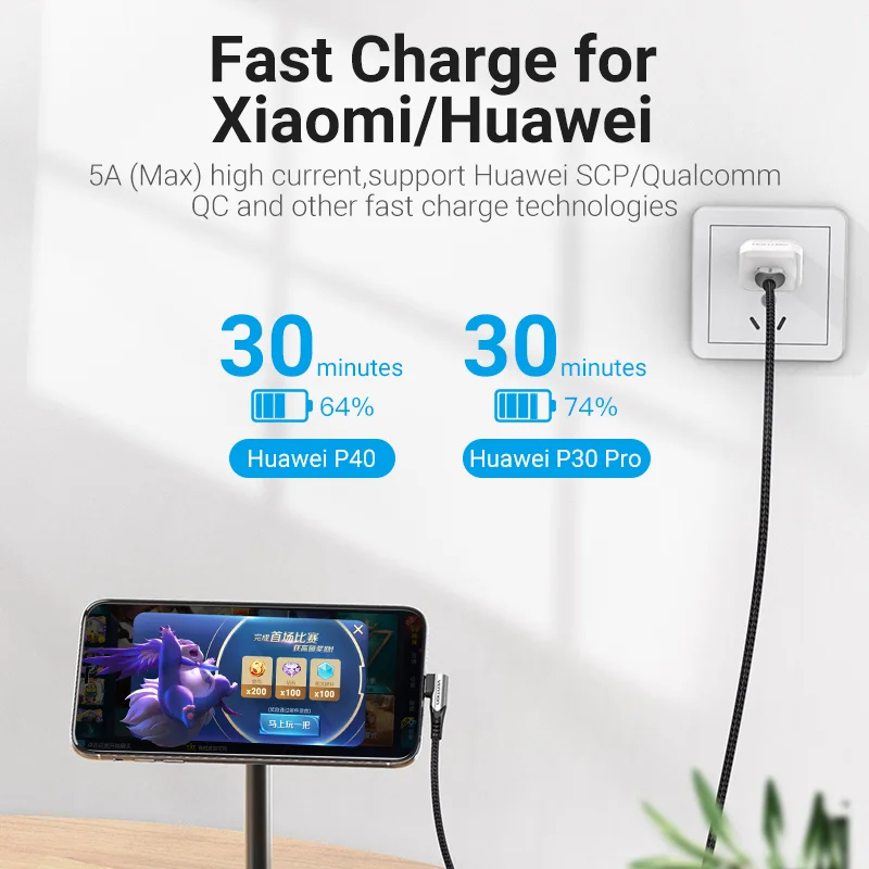 Comprar Vention-Cable USB tipo C para móvil, dispositivo de carga rápida de 40W, 3,0 SCP, para Huawei Mate 30, P40, P30, USB-C