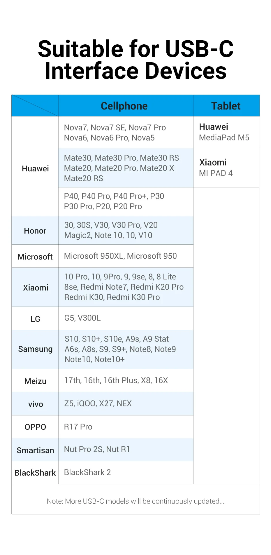 Adecuado para dispositivos de interfaz USB-C