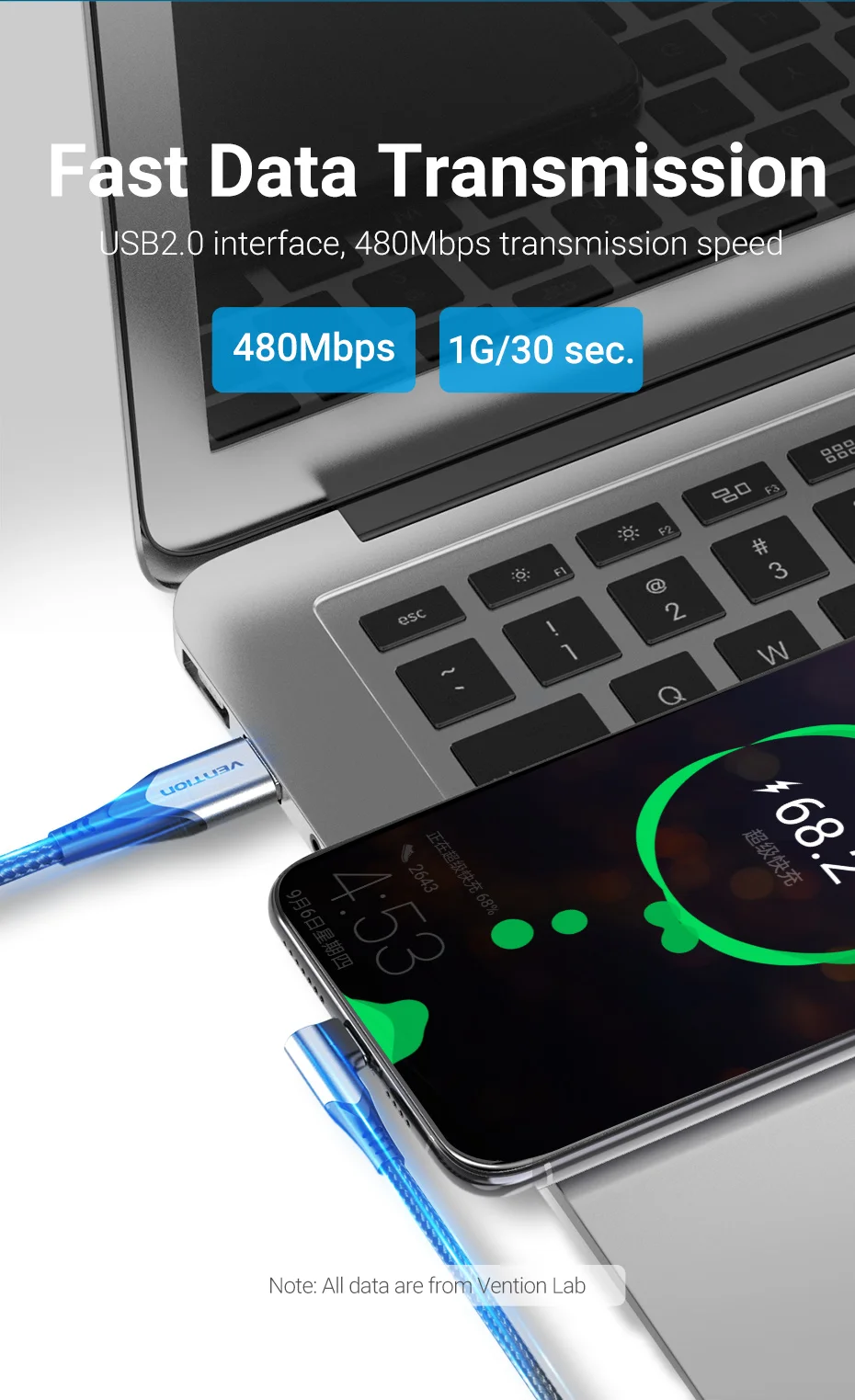 Interfaz USB2.0, velocidad de transmisión de 480Mbps