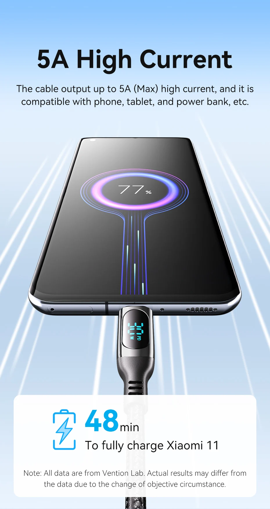 El cable de salida hasta 5A (máx.) de alta corriente, y es compatible con teléfono, tableta, Banco de energía, etc.