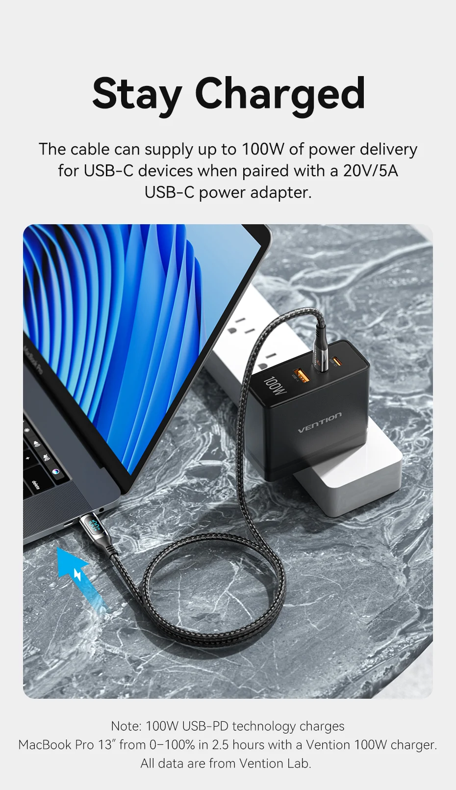 Comprar Vention-Cable USB tipo C para Xiaomi MacBook Pro Samsung, cargador de carga rápida, USB-C, 100W