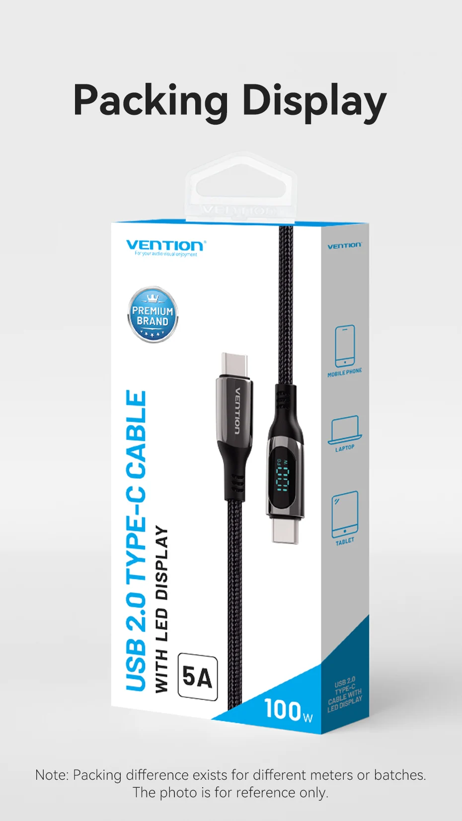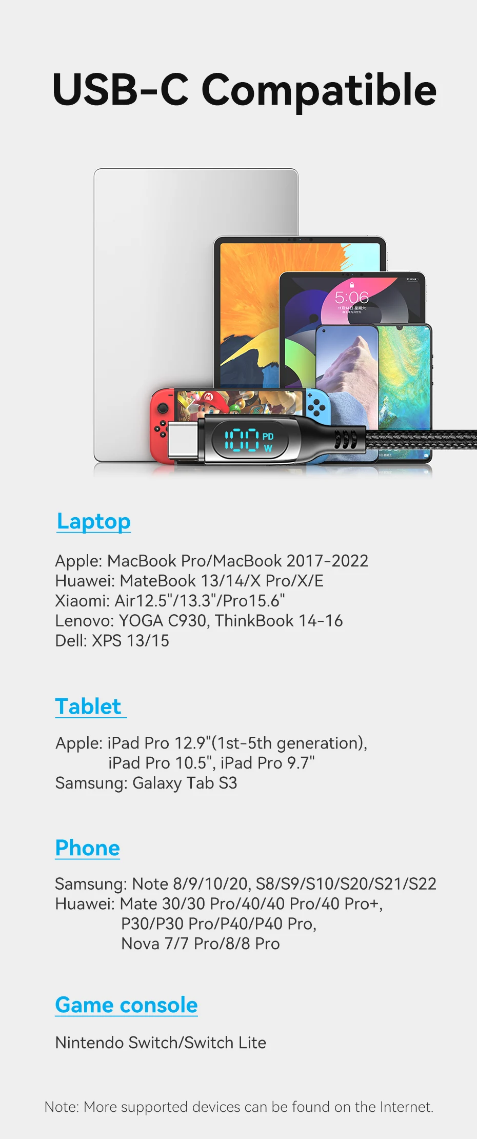 El cable puede suministrar hasta 100W de suministro de energía para dispositivos de la USB-C cuando se empareja con un adaptador de corriente de 20V/5A DE LA USB-C.
