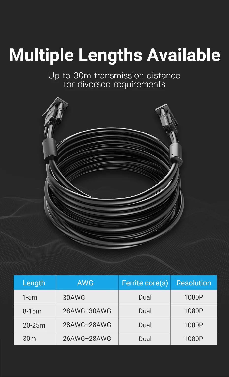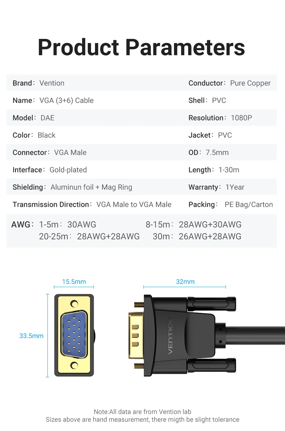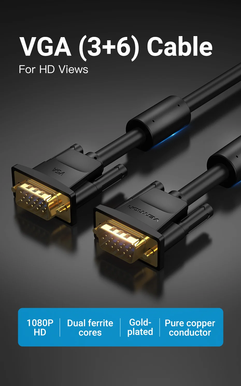 Comprar Vention-Cable VGA macho a macho, 1080P, 1m, 1,5 m, 5m, 10m, 20m, Cable de 15 pines para Monitor de ordenador y proyector
