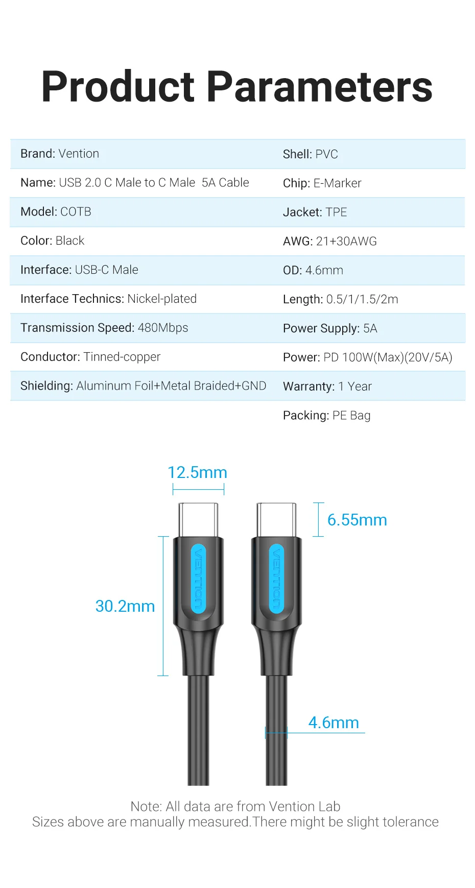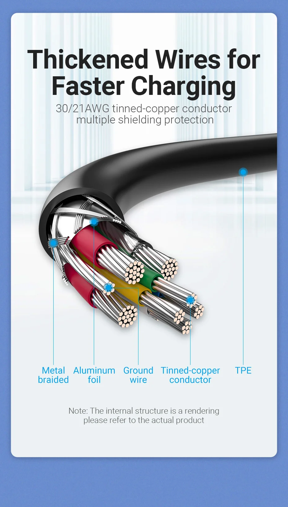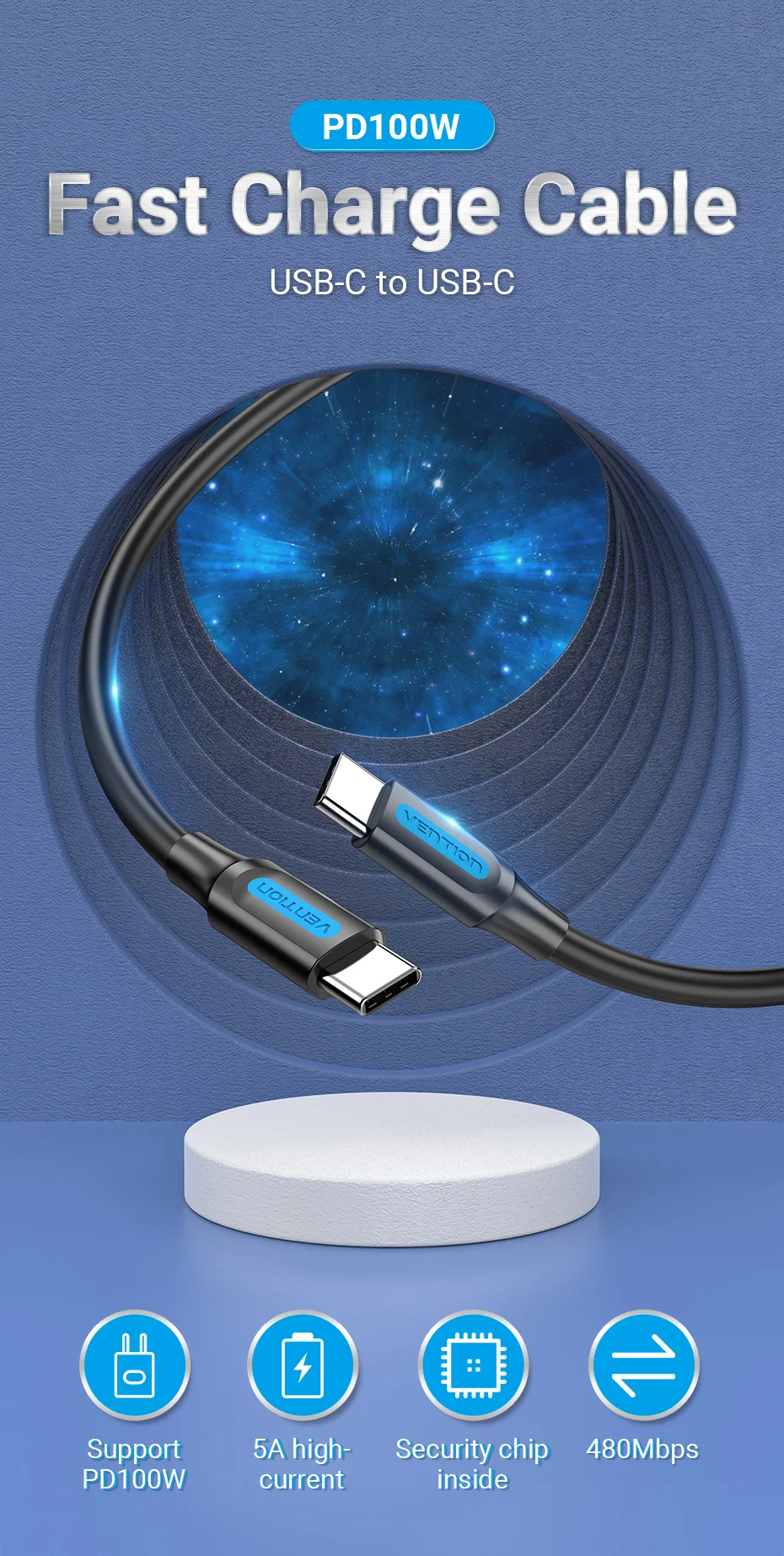 Comprar Vention Cables de USB-C a USB tipo C de 100W para Samsung S20 PD Cable de cargador rápido para Macbook Pro compatible con interruptor de carga rápida 4,0